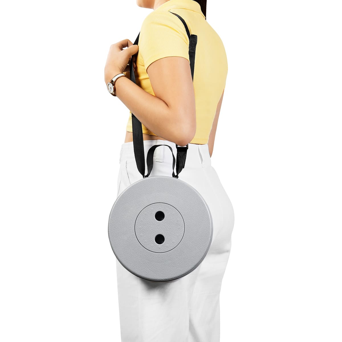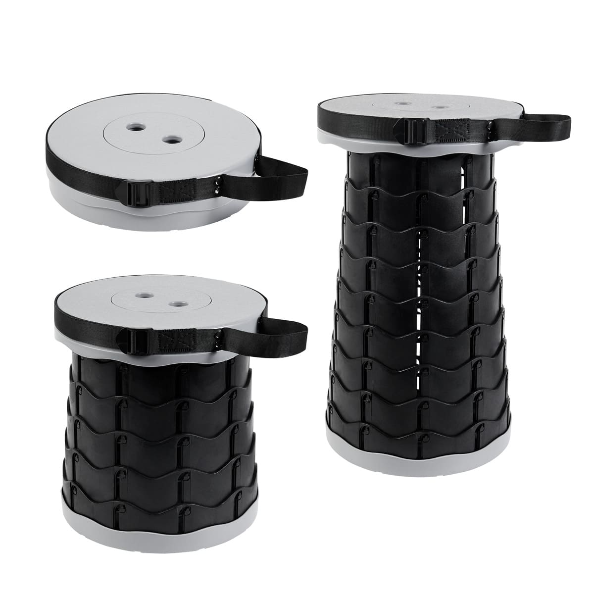 Banco plegable portátil. Sistema de agarre que lo hace estable y fácil de plegar o guardar. Gira y extiende a la altura ajustable que deseas, hasta 45 cm. Capacidad de carga de 120 kg. Incluye asa de hombro ajustable para llevarlo a todas partes.