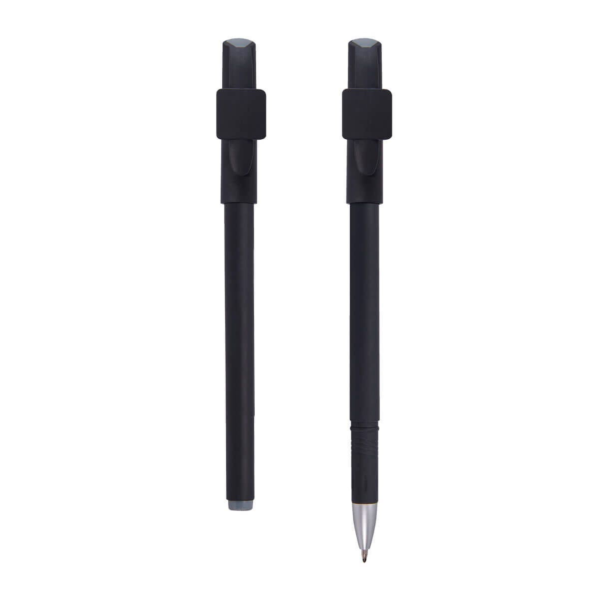 Bolígrafo con tapón. Incluye clip con recuadro para impresión de código QR. Barril con terminado tipo rubber. Este producto por ser últimas piezas puede presentar alguna variación, no se aceptan devoluciones.