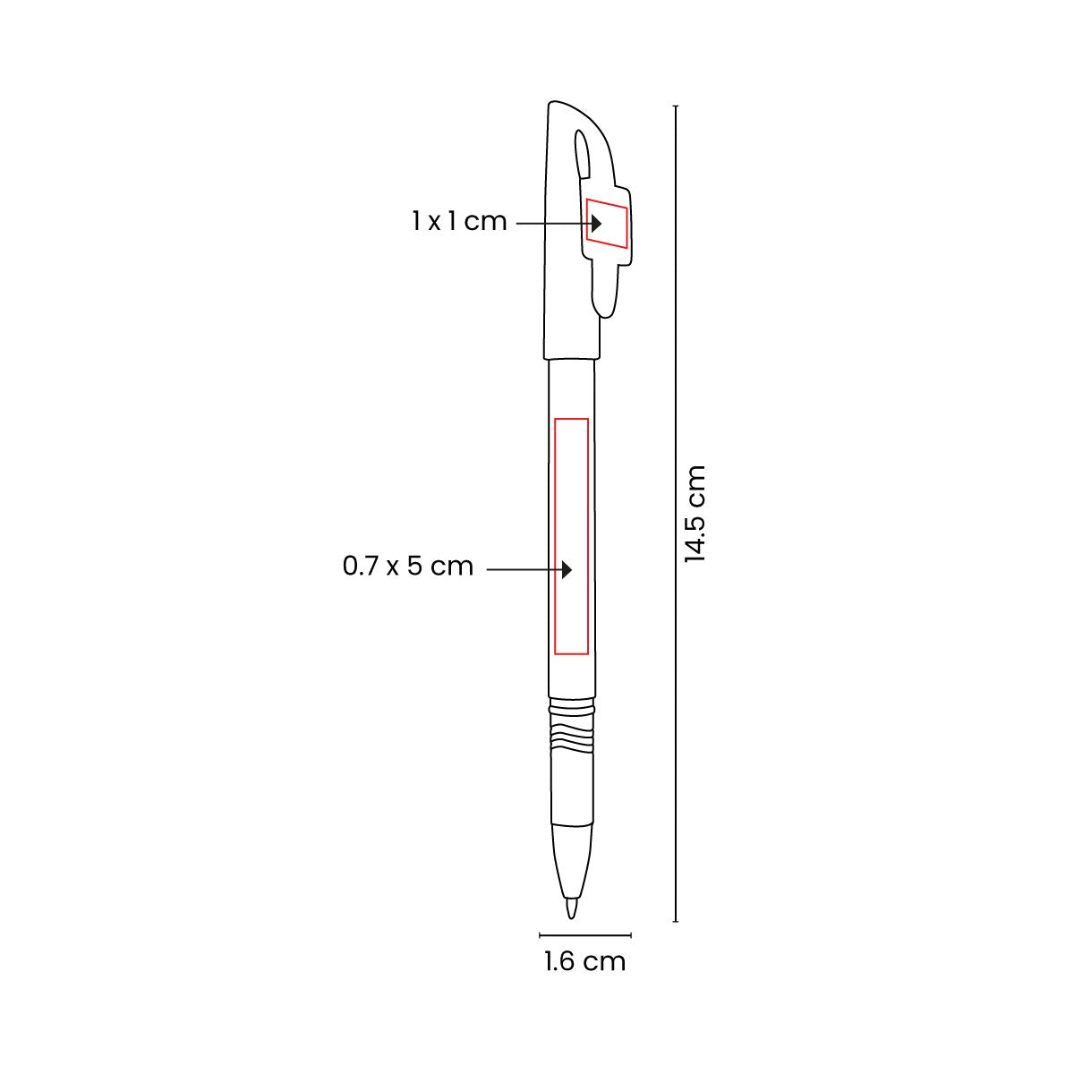 Área de impresión: 1 x 1 cm Clip / 0.7 x 5 cm Barril