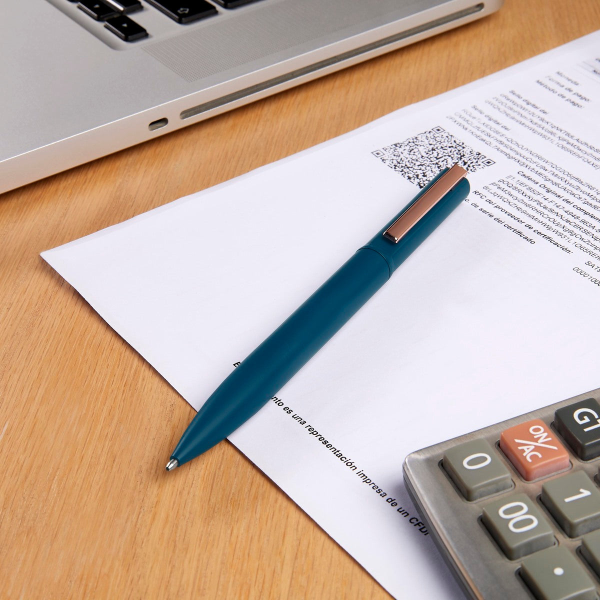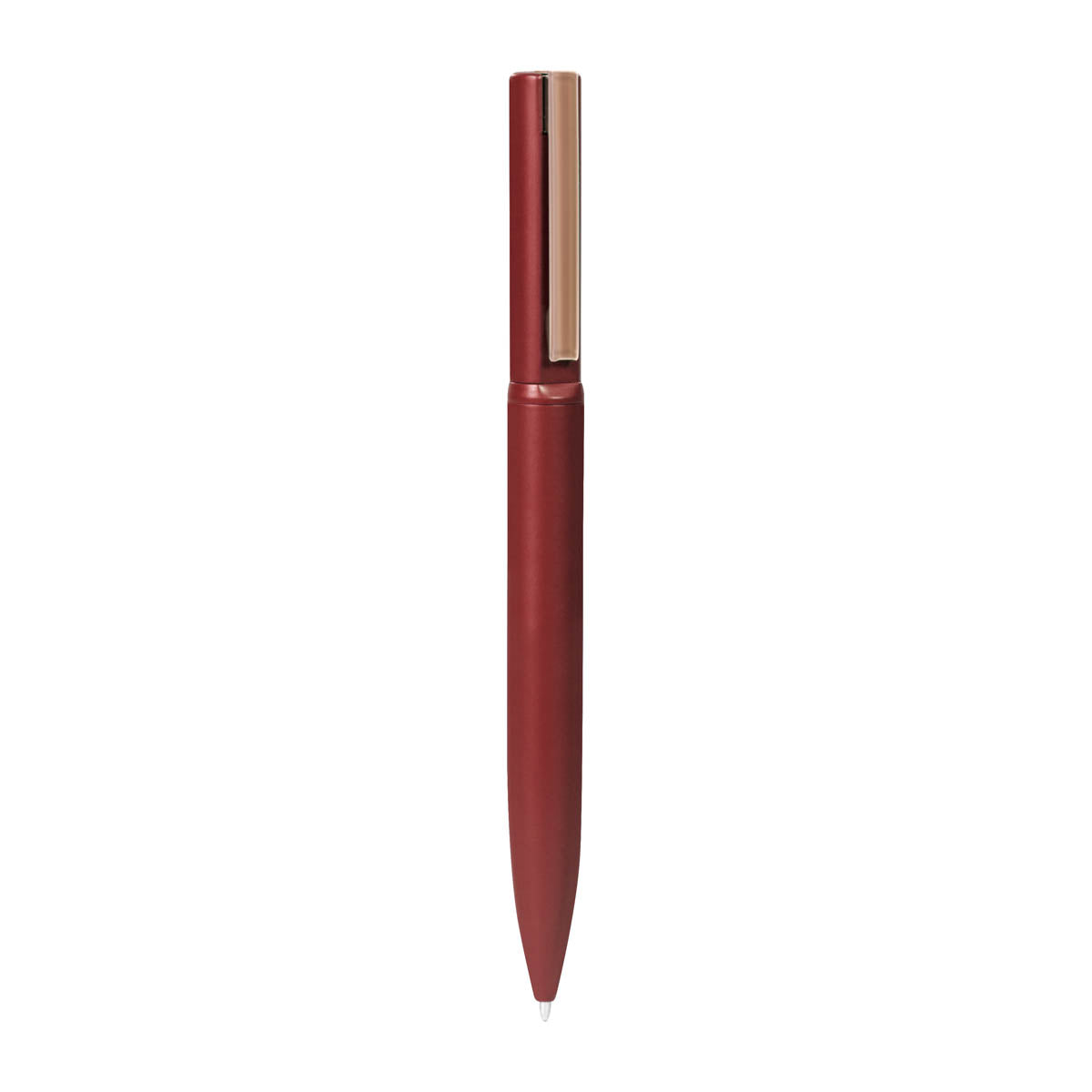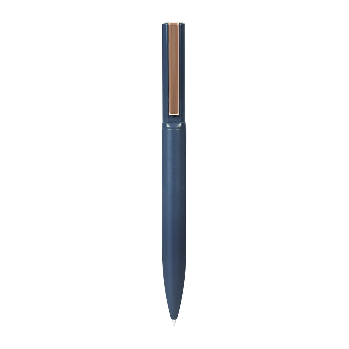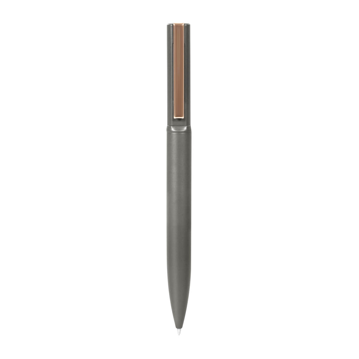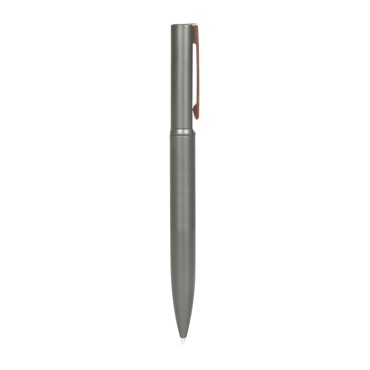 Boligrafo metalico con terminado mate y clip rose gold. Mecanismo twist. Incluye estuche.