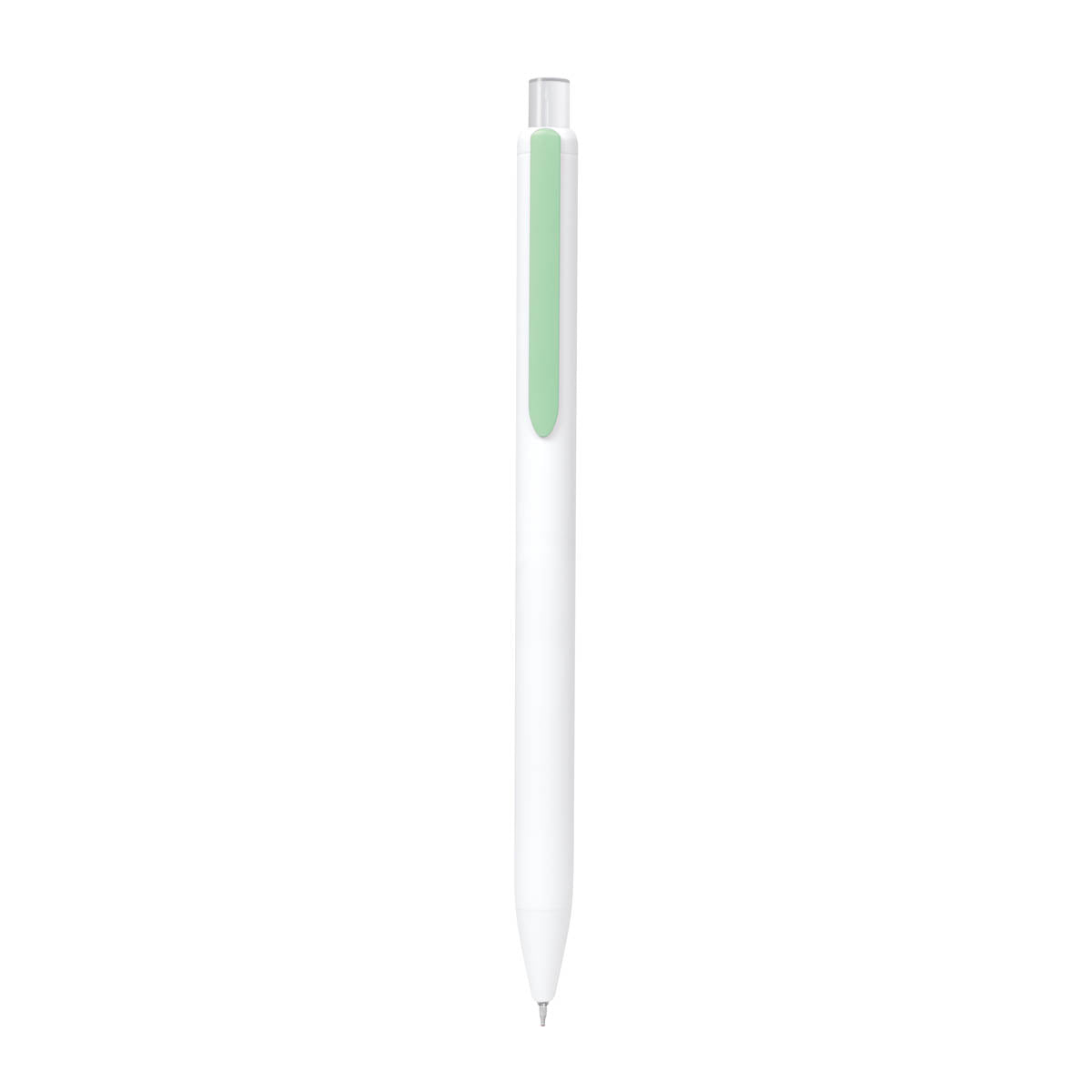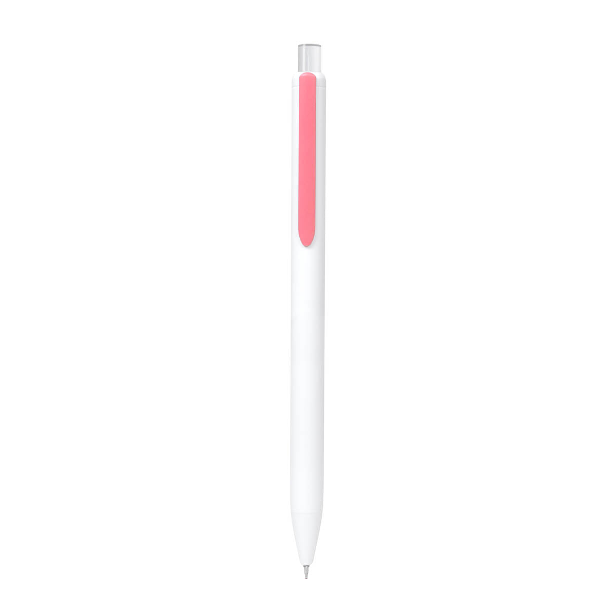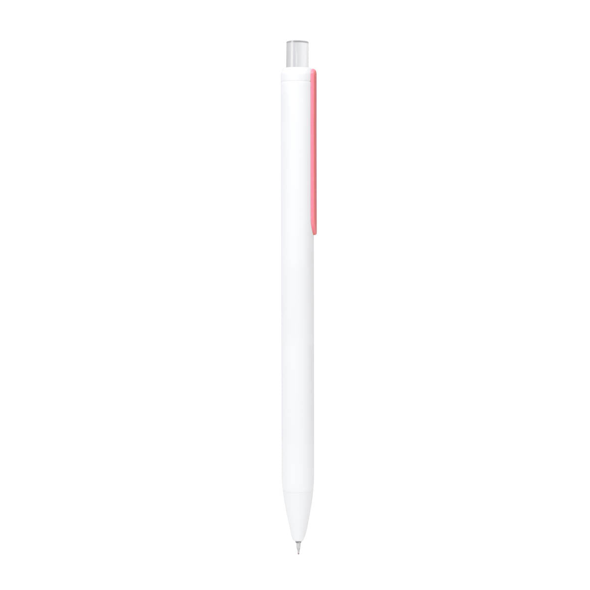 Boligrafo con tinta semigel. Clip simulado que anade un toque de color moderno. Mecanismo pulsador.
