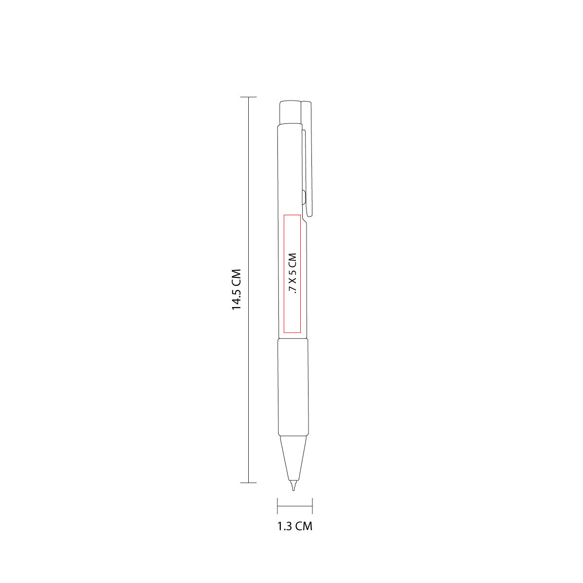 Bolígrafo de tinta de gel con grip de silicón antiderrapante. Mecanismo pulsador.