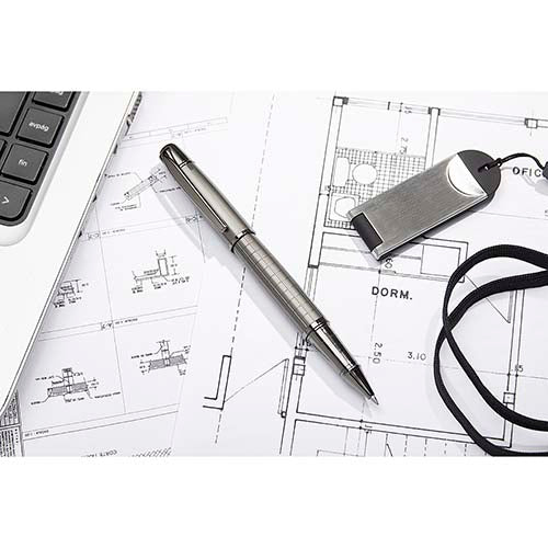 Bolígrafo roller ball con tapón. Incluye estuche.