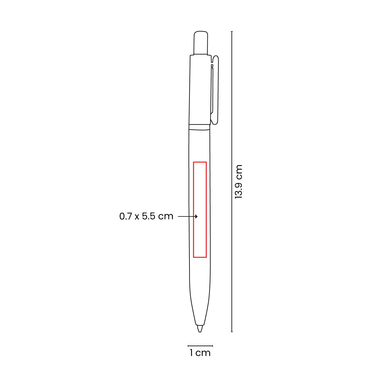 Bolígrafo con terminado rubber y clip metalizado. Mecanismo pulsador.