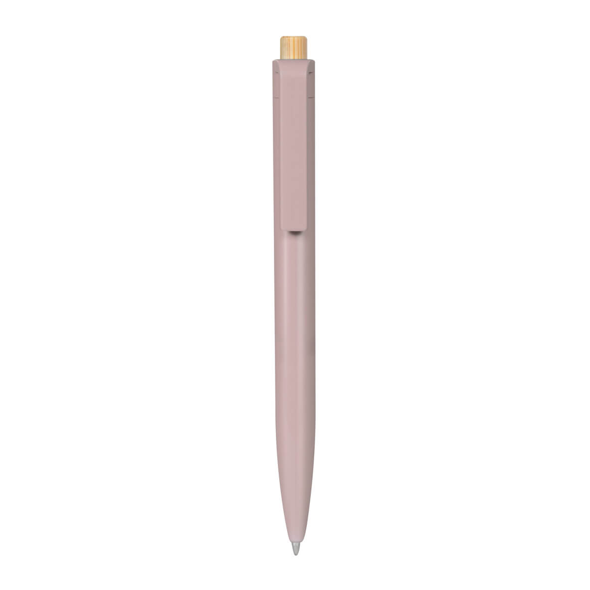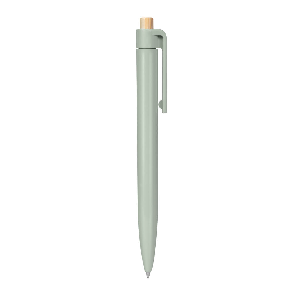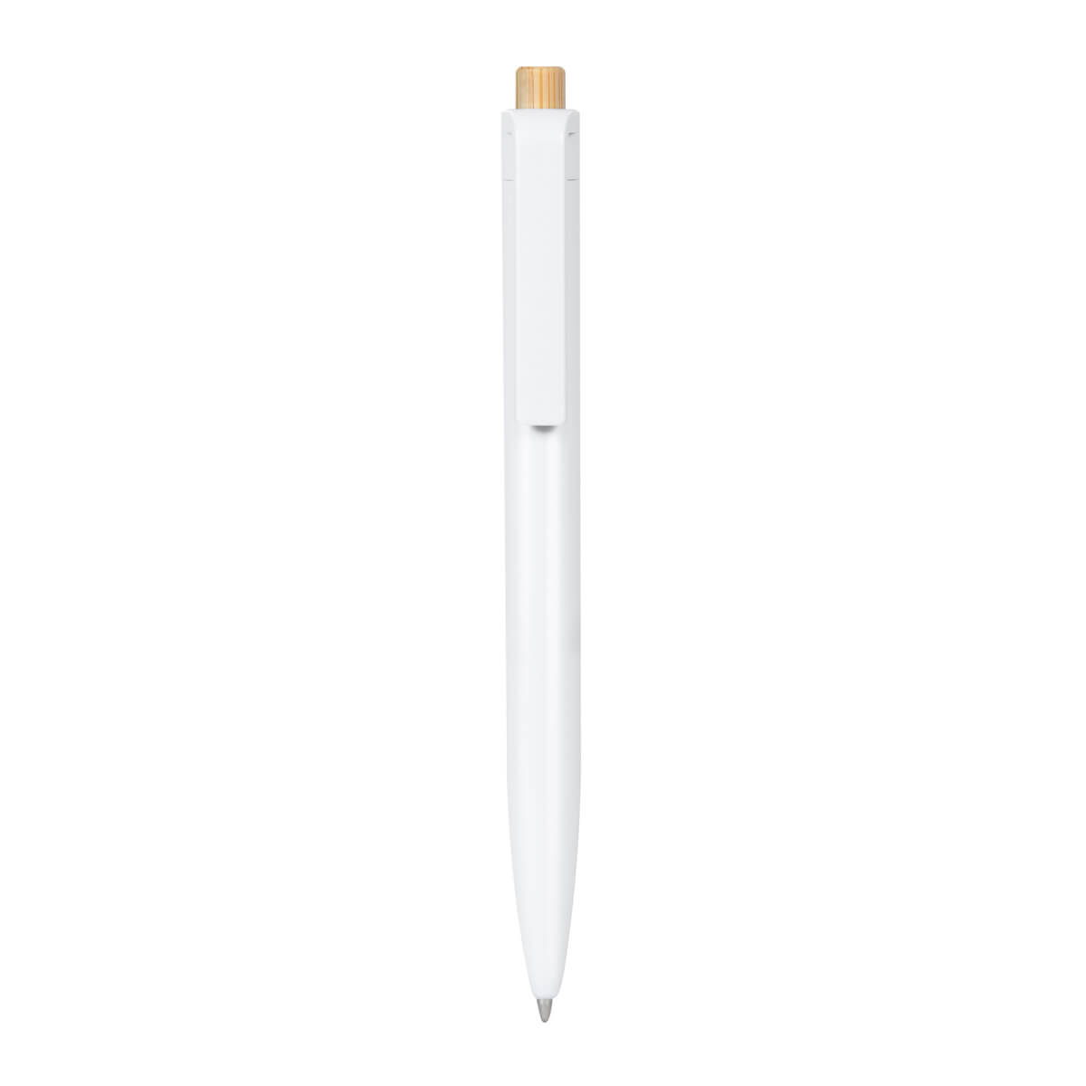 Boligrafo con boton de madera que anade un toque ecologico. Mecanismo pulsador.