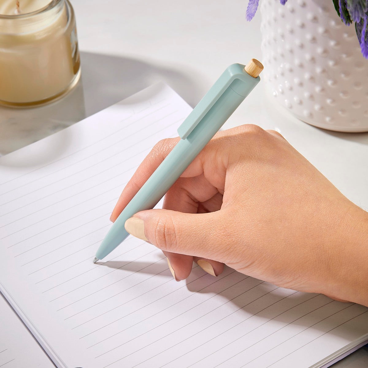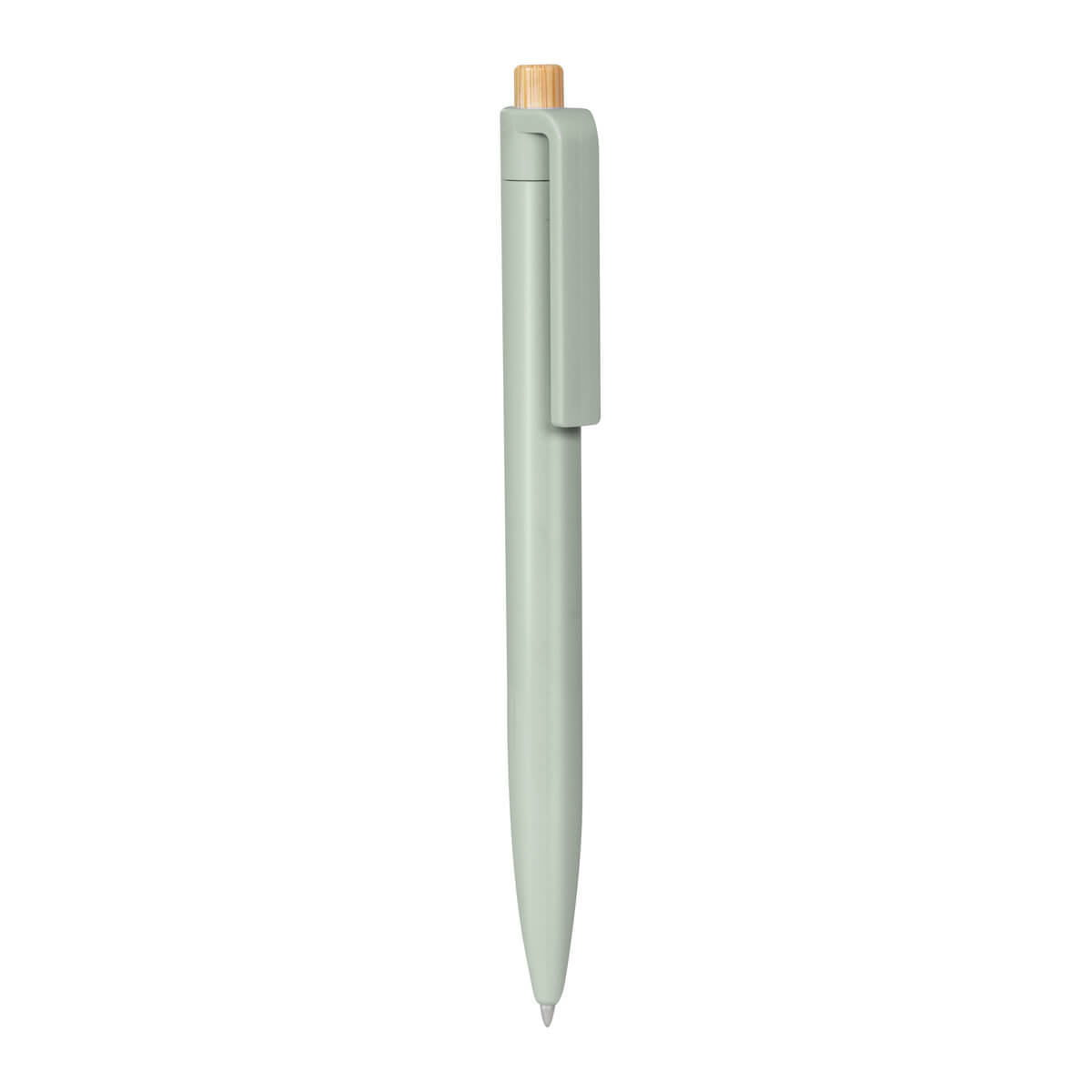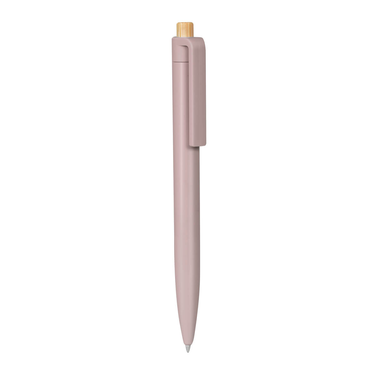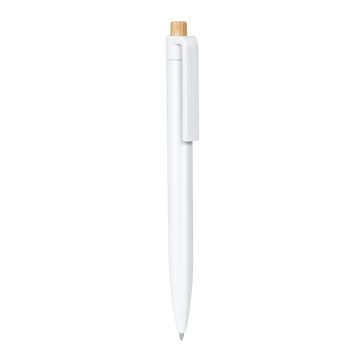 Boligrafo con boton de madera que anade un toque ecologico. Mecanismo pulsador.