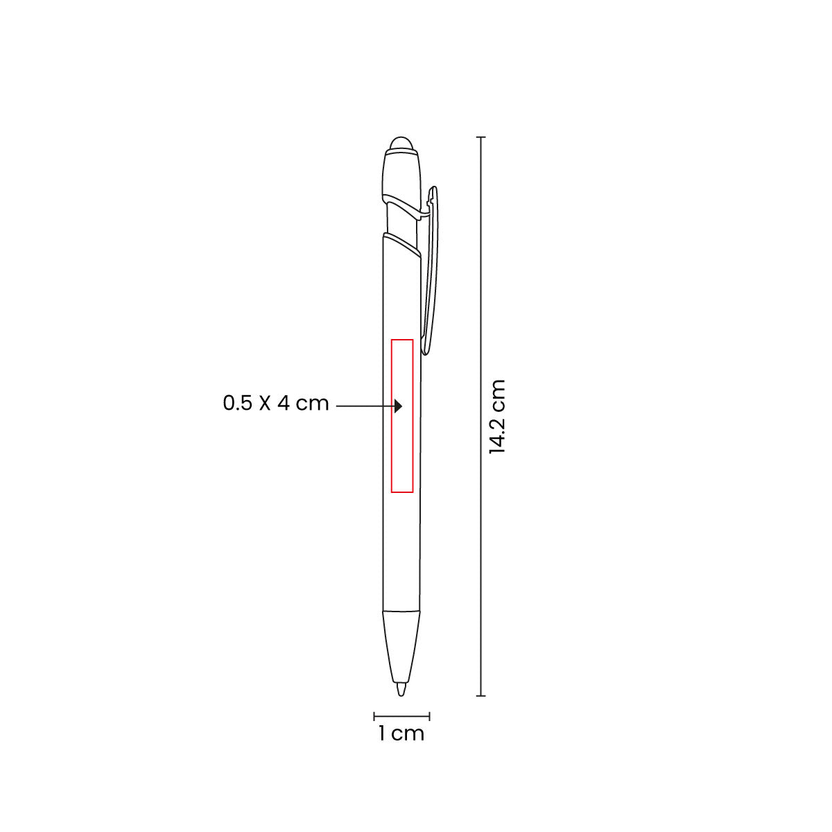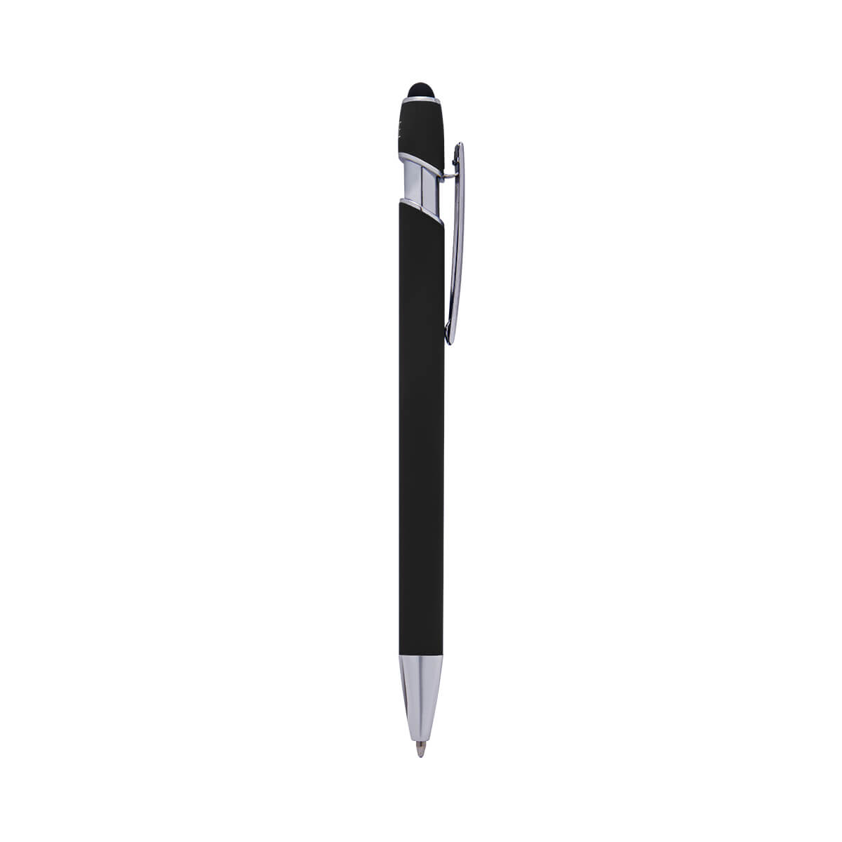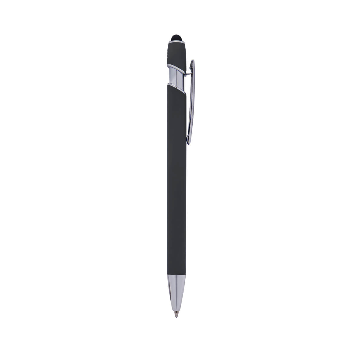 Bolígrafo con touch screen y terminado tipo rubber. Mecanismo pulsador. Incluye funda.
