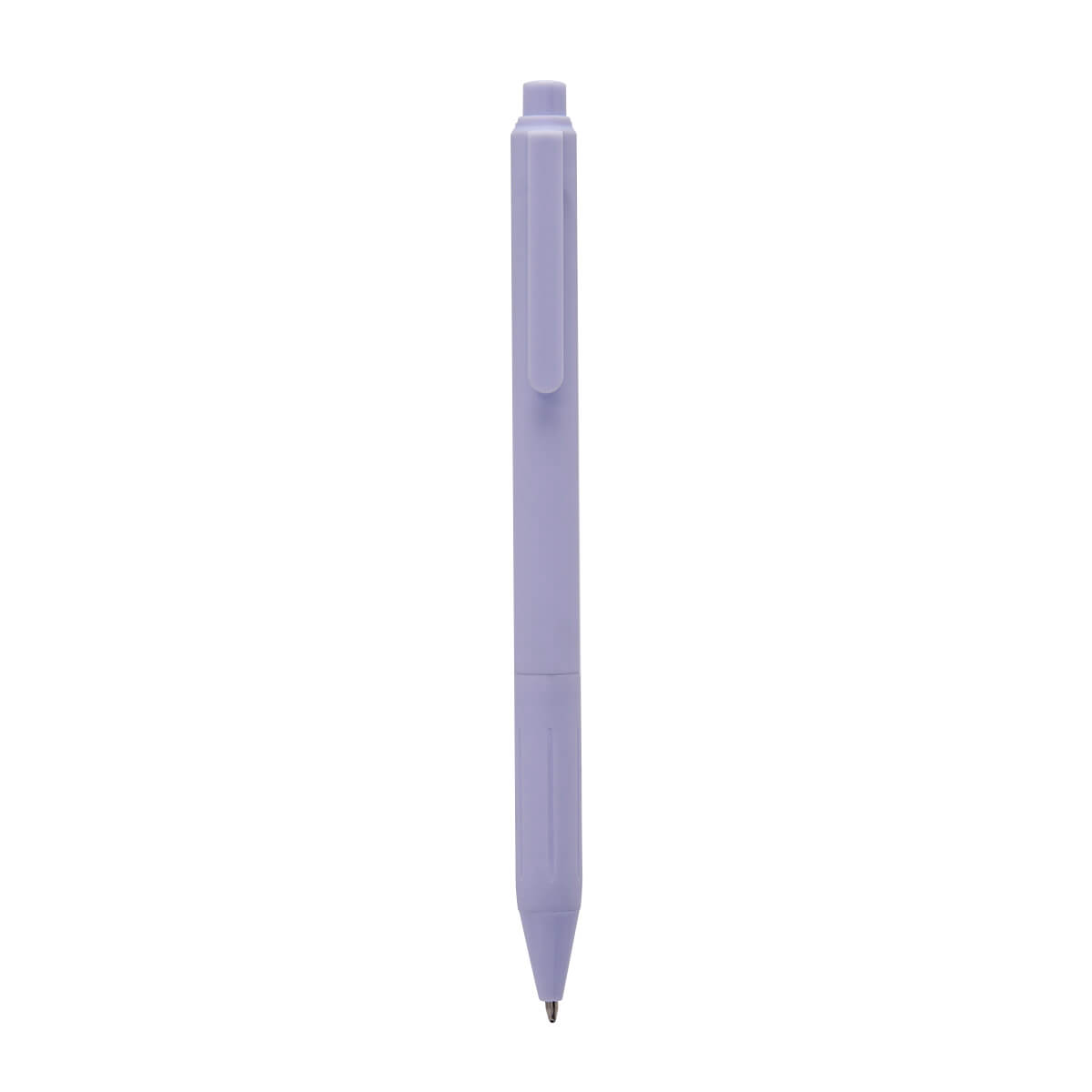 Boligrafo en colores pastel. Grip de silicon antiderrapante. Mecanismo pulsador.