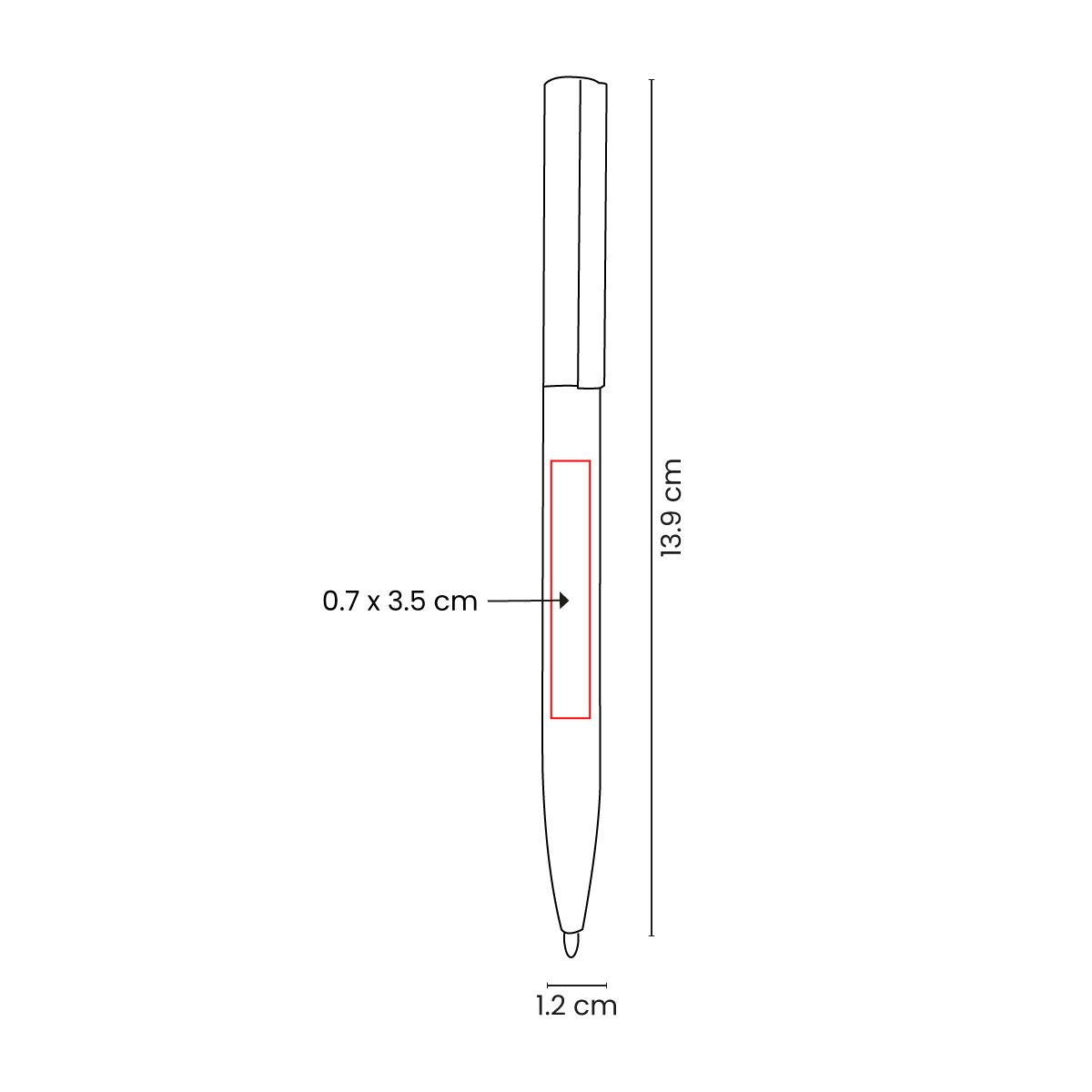 Bolígrafo con terminado mate. Mecanismo twist. Diseño estilizado sin clip. Incluye estuche.