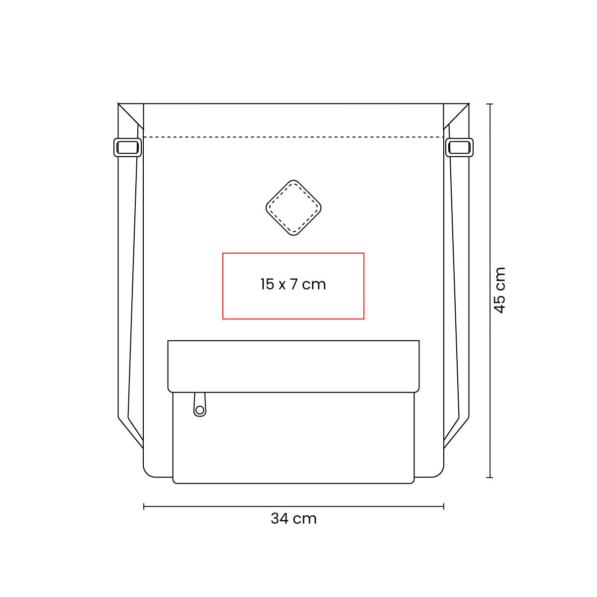 Bolsa-mochila con tirantes gruesos ajustables con broche de plastico y cerrado de jareta. Incluye bolsillo frontal con cierre.