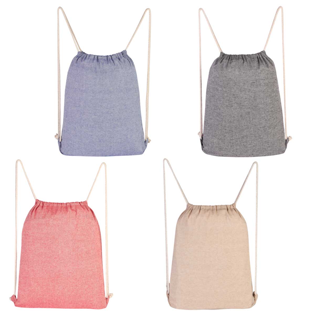 Bolsa-mochila con tirantes de cordon y cerrado de jareta.