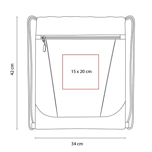 Bolsa-mochila gris, material jaspeado, bolsillo frontal con cierre, con tirantes de cordon y cerrado de jareta.