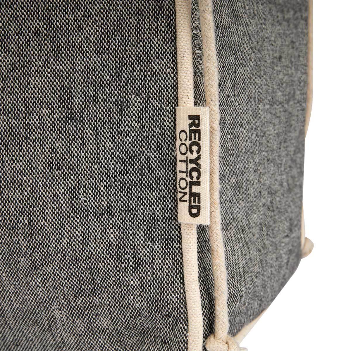 Bolsa ecologica de algodon reciclado. Incluye jaretas laterales ajustables y base con fuelle de carton removible.