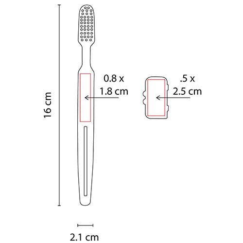 Área de impresión: 0.8 x 1.8 cm Cepillo / 0.5 x 2.5 cm Estuche