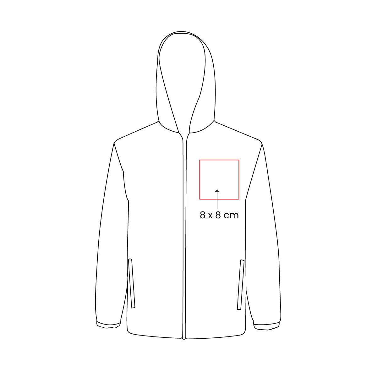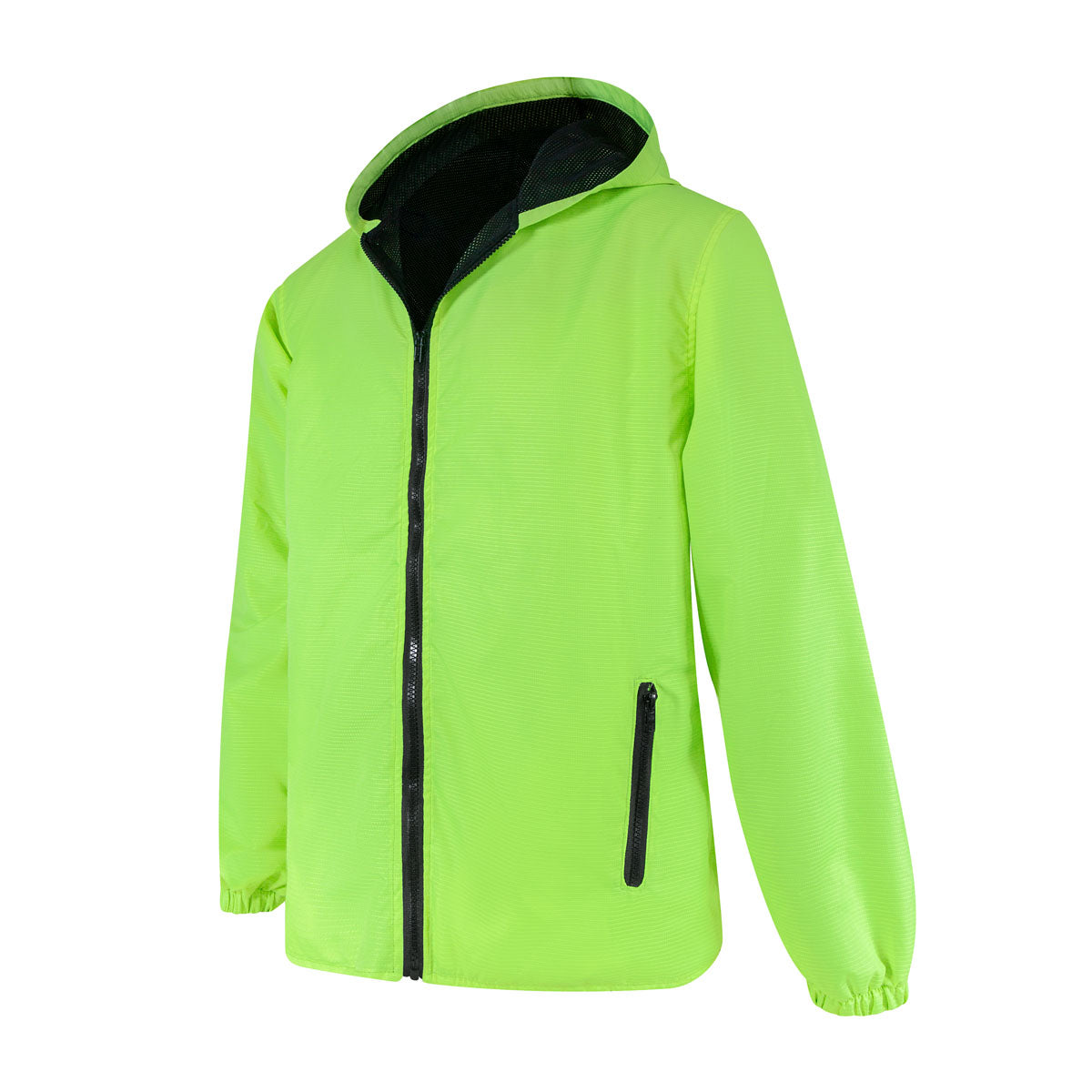 Chamarra deportiva con dos bolsillos frontales, gorro y elásticos en el área de las muñecas para un mejor ajuste. Forro interno hecho con material transpirable y cómodo. Destacan los tonos fluorescentes que agregan un aspecto moderno a su diseño.