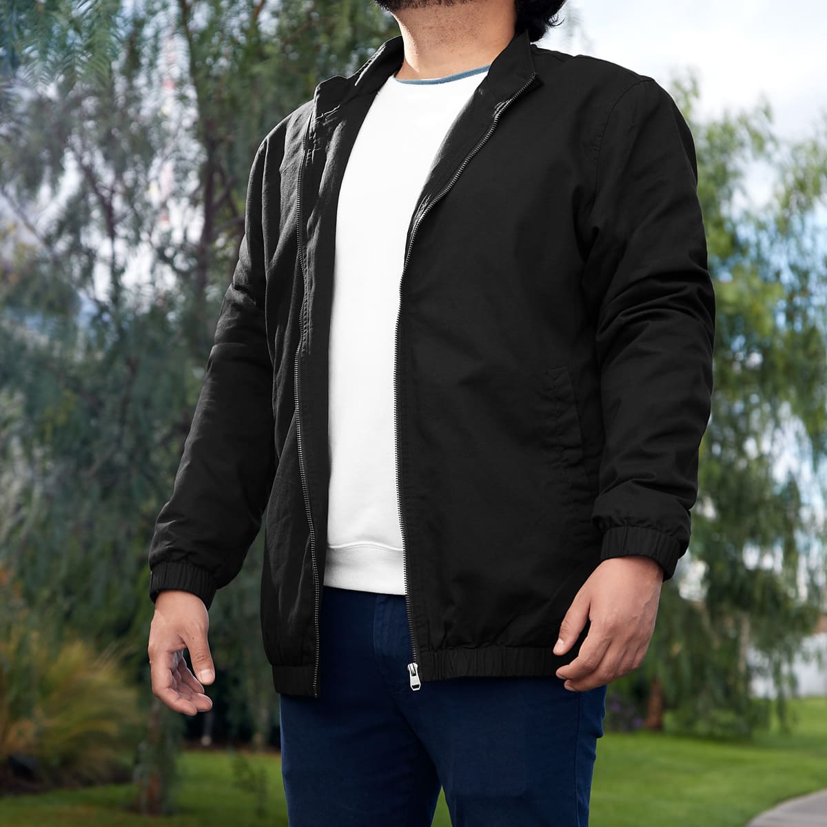 Chamarra casual. Cuenta con cierre metalico y elastico para ajuste en munecas y cintura. Fabricada con material tipo gabardina, exterior 100% algodon y forro 95% poliester - 5% algodon. Incluye 2 bolsillos exteriores con boton metalico y 1 bolsillo invisible en la parte interna.