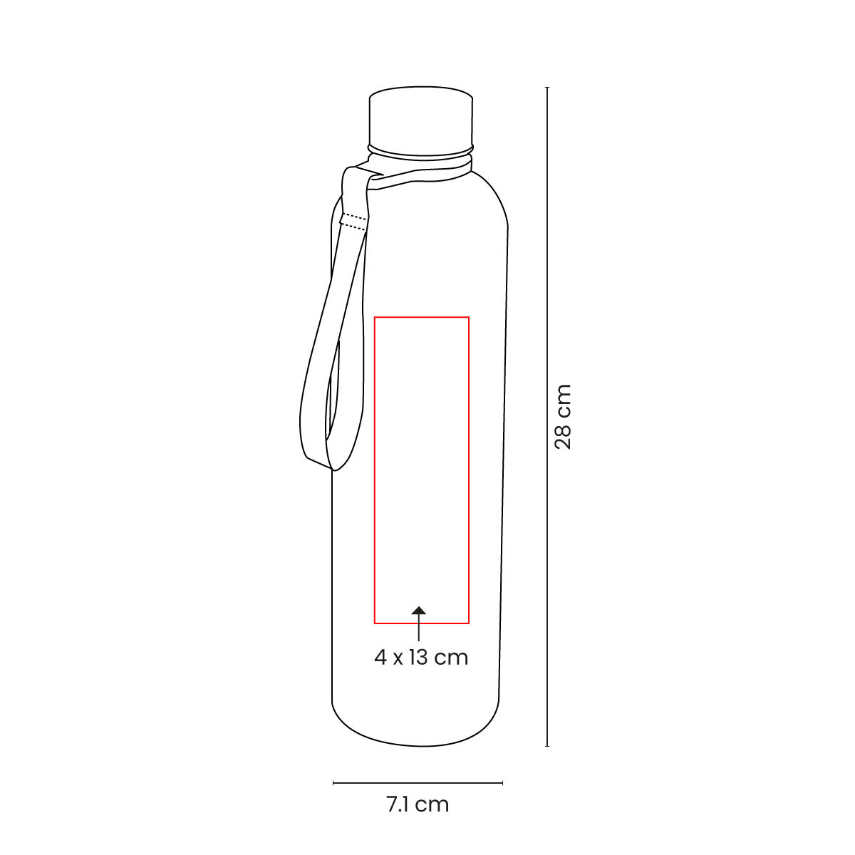 Tapa metálica con cierre de rosca. Aro de plástico con asa de tela. Cuerpo con terminado mate, suave al tacto y color frosty . Incluye marcador de tiempo para motivar tus hábitos de hidratación. Incluye caja individual.