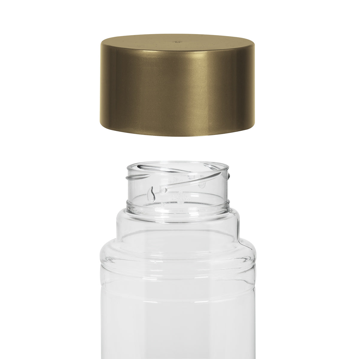 Tapa de color metalizado. Sistema de rosca twist-off que permite abrir y cerrar la tapa en un giro. Mantener el linner en el interior de la tapa en todo momento, se debe retirar hasta su uso final. Revisar que la tapa no este cerrada completamente. No exponer el cilindro a temperaturas mayores a 40 °C durante su almacenamiento y transportacion. Mantener en su empaque individual antes y despues de su transformacion. No apto para bebidas calientes. No introducir en microondas ni lavavajillas.