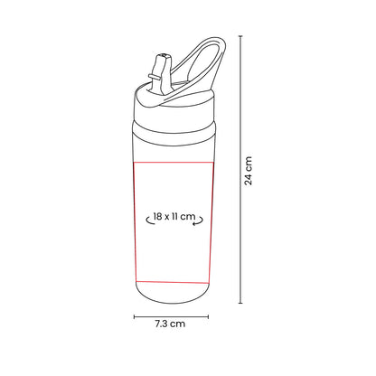 Cilindro para sublimar de aluminio de una pared. Tapa de plástico con cierre de rosca, asa y popote. Incluye caja individual.
