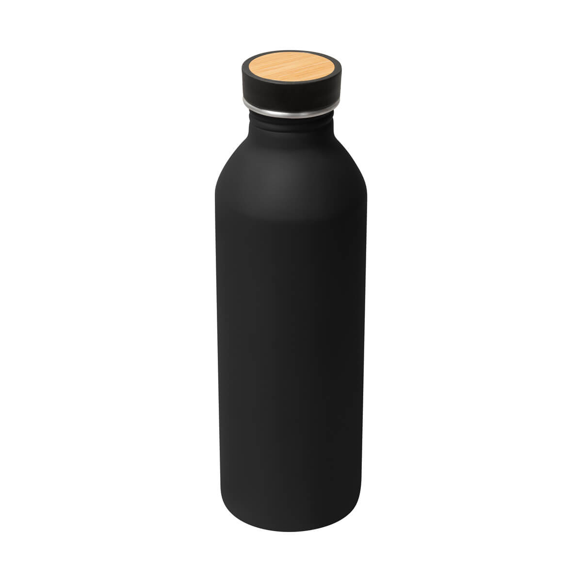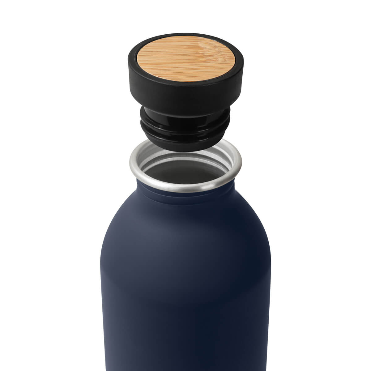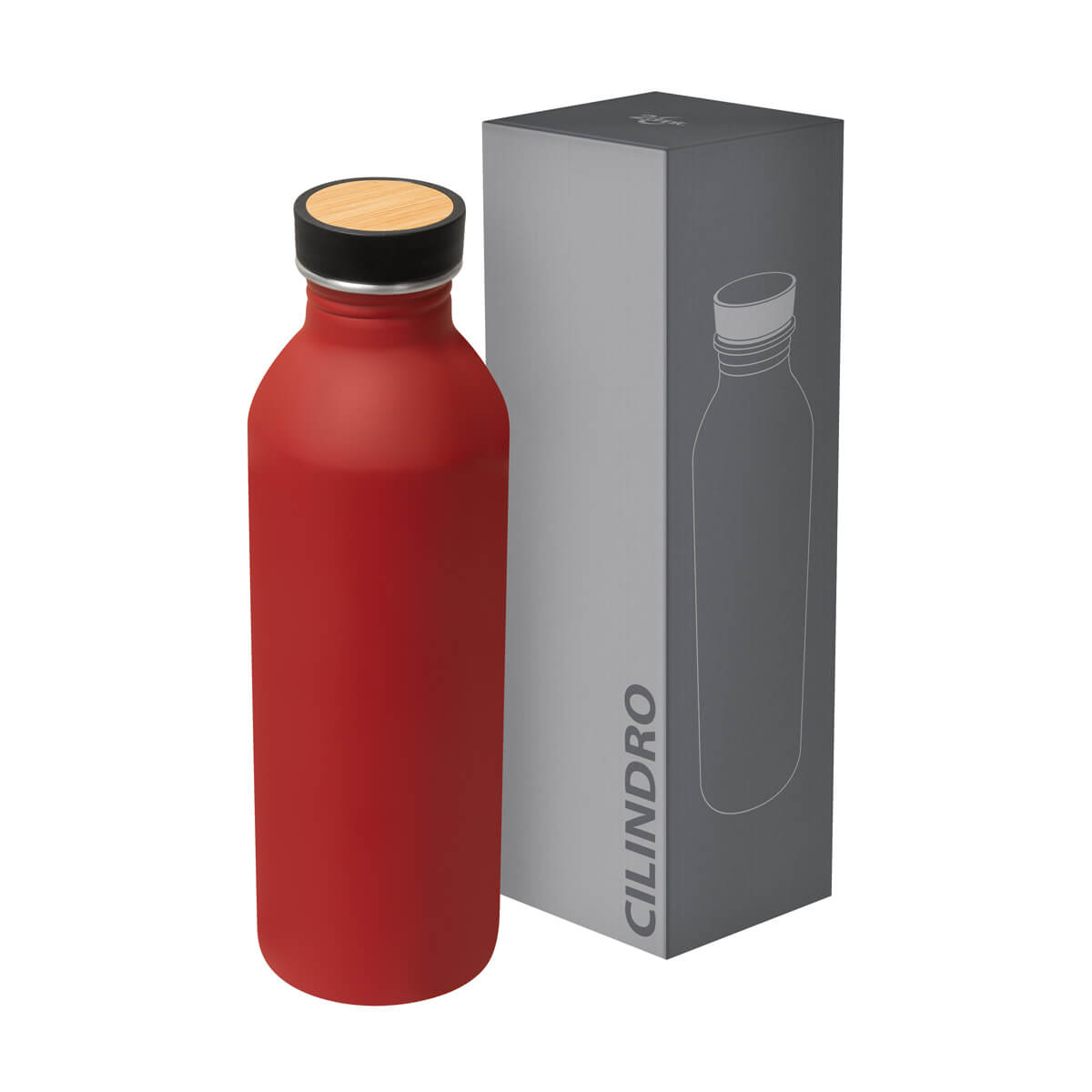 Cilindro metálico de una pared. Tapa de plástico y bambú, su sistema de rosca, permite cerrarlo fácilmente y prevenir derrames. Su cuerpo en terminado mate le agrega un toque elegante. El bambú es un producto natural el cual puede presentar variaciones en tonalidades y vetas. Capacidad de 18 Oz. Incluye caja individual.