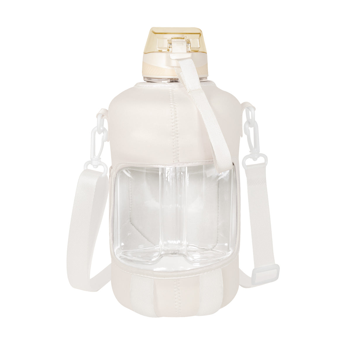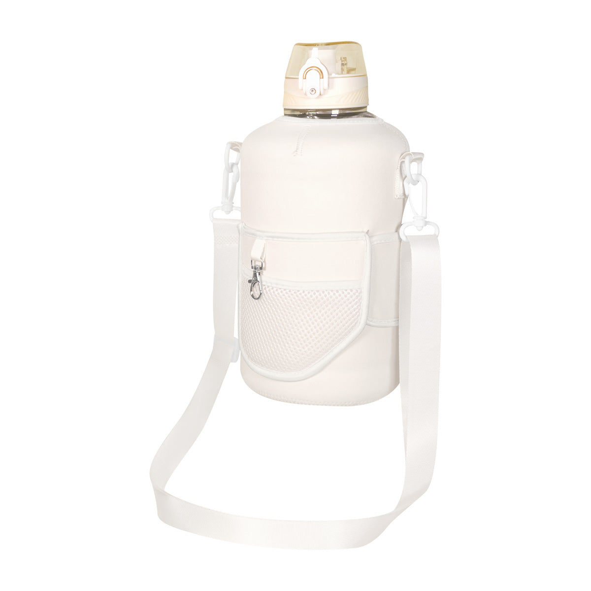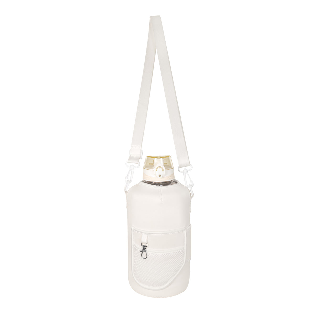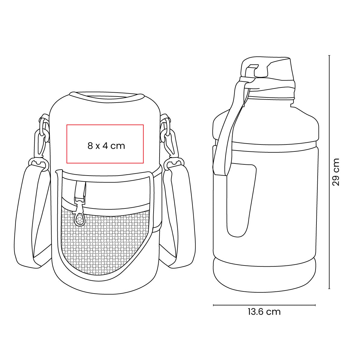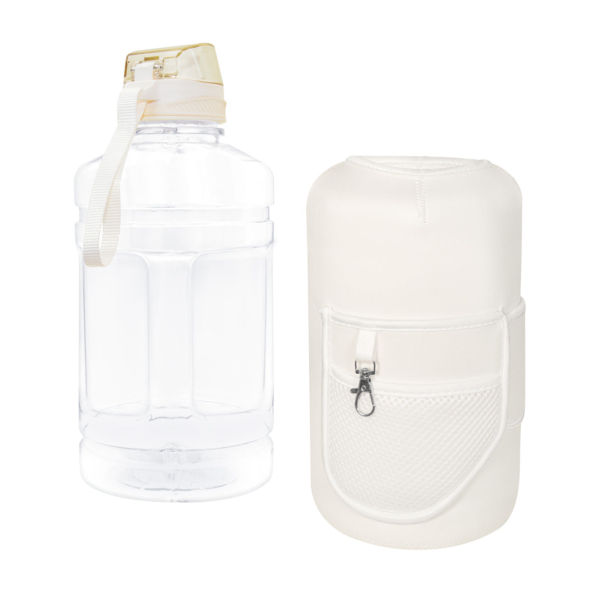 Cilindro con pared sencilla de plastico. Incluye funda removible de neopreno. Tapa de plastico con sistema de rosca y sobretapa que agrega un clip de seguridad para evitar derrames. Su tamano esta disenado para quienes necesitan llevar una gran cantidad de agua de manera practica, es perfecto para actividades intensas, largas jornadas o aventuras al aire libre, asegurando que nunca te falte agua. Los bolsillos de su funda, te permiten organizar tus articulos esenciales y no perderlos de vista mientras te ejercitas y su correa ajustable lo hace ideal para llevarlo contigo sin mayor esfuerzo.