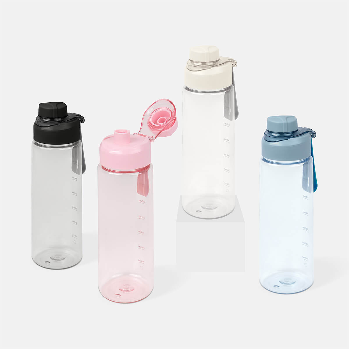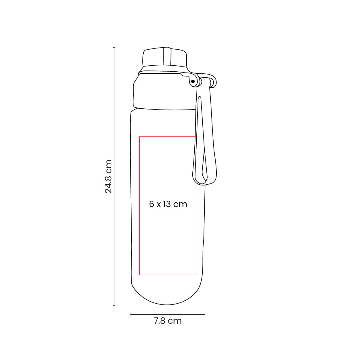 Cilindro de plástico de una pared. Tapa de plástico con sistema de rosca y sobretapa para la boquilla. Cuenta con asa de silicón para llevarlo cómodamente e indicador de mililitros. Perfecto para el día a día.