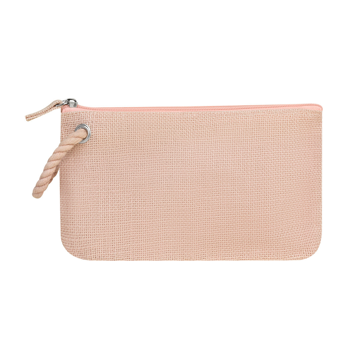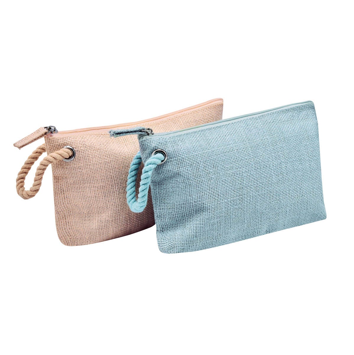 Cosmetiquera con fuelle. Compartimento principal con cierre. Incluye asa de algodon. El yute es un producto natural el cual puede presentar variaciones en tonalidades y en la urdimbre y trama de la tela.