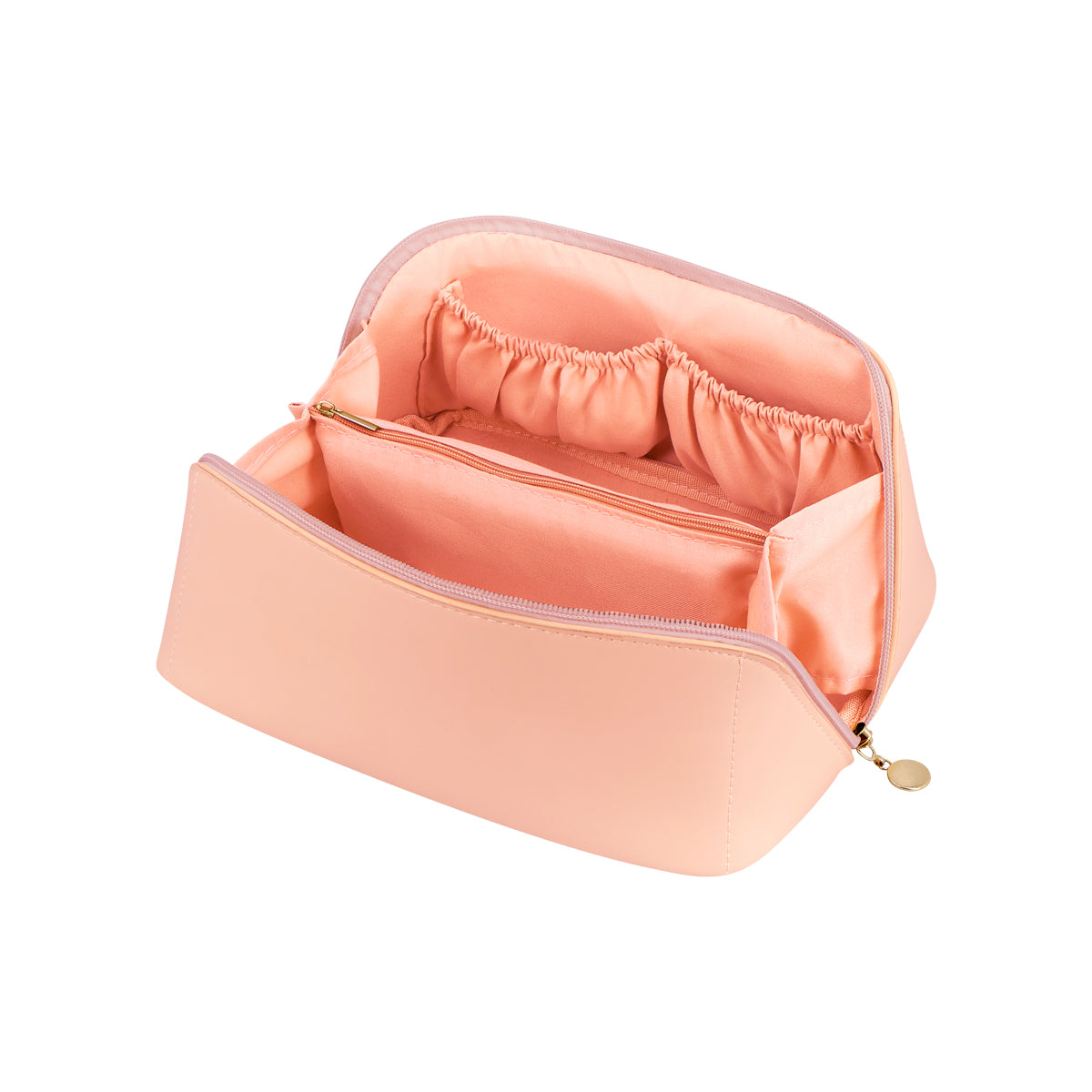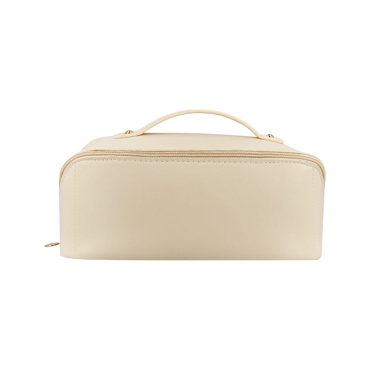 Su elegante diseno en curpiel agrega un toque de sofisticacion a tu rutina diaria, su cierre cruzado permite expandir la cosmetiquera al abrir, brindandote un facil acceso a tus productos. En su interior, encontraras tres elasticos organizadores que mantienen tus articulos en su lugar, evitando que se mezclen. Ademas, cuenta con un bolsillo central con cierre, ideal para guardar objetos mas pequenos. Incluye un asa del mismo material, lo que facilita su transporte. Podras llevar tus productos esenciales de belleza de manera ordenada, ya sea en casa o en tus viajes.