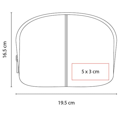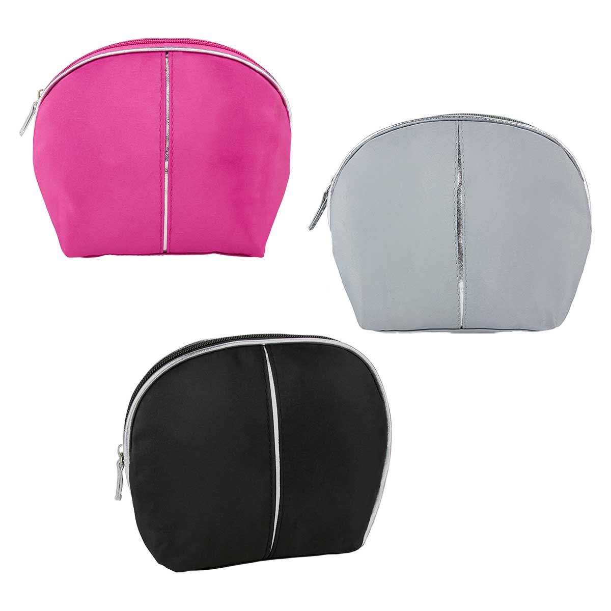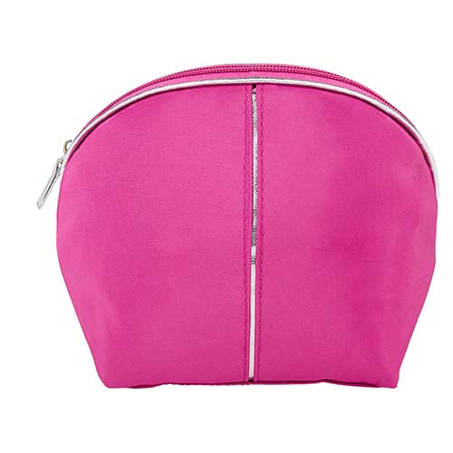 Cosmetiquera de microfibra de color con cierre, bies y línea de adorno en color plata.
