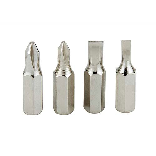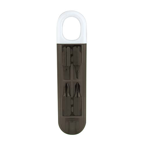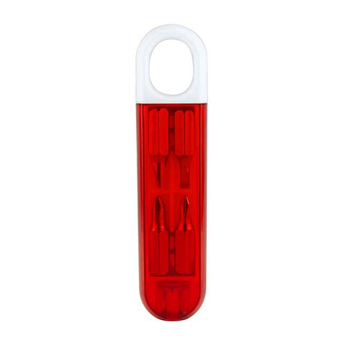 Contiene desarmador con 2 puntas de cruz y 2 puntas planas diferentes e intercambiables.
