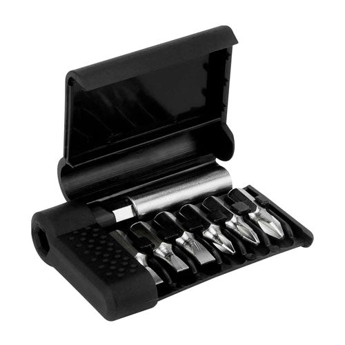 Contiene desarmador con 3 puntas planas, 3 puntas de cruz, diferentes e intercambiables. Incluye extensión. Este producto por ser últimas piezas puede presentar alguna variación, no se aceptan devoluciones.