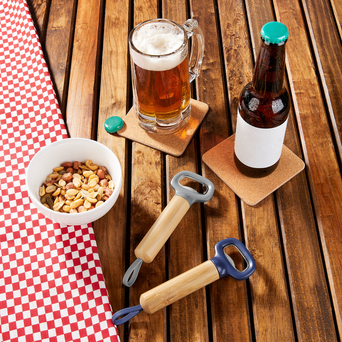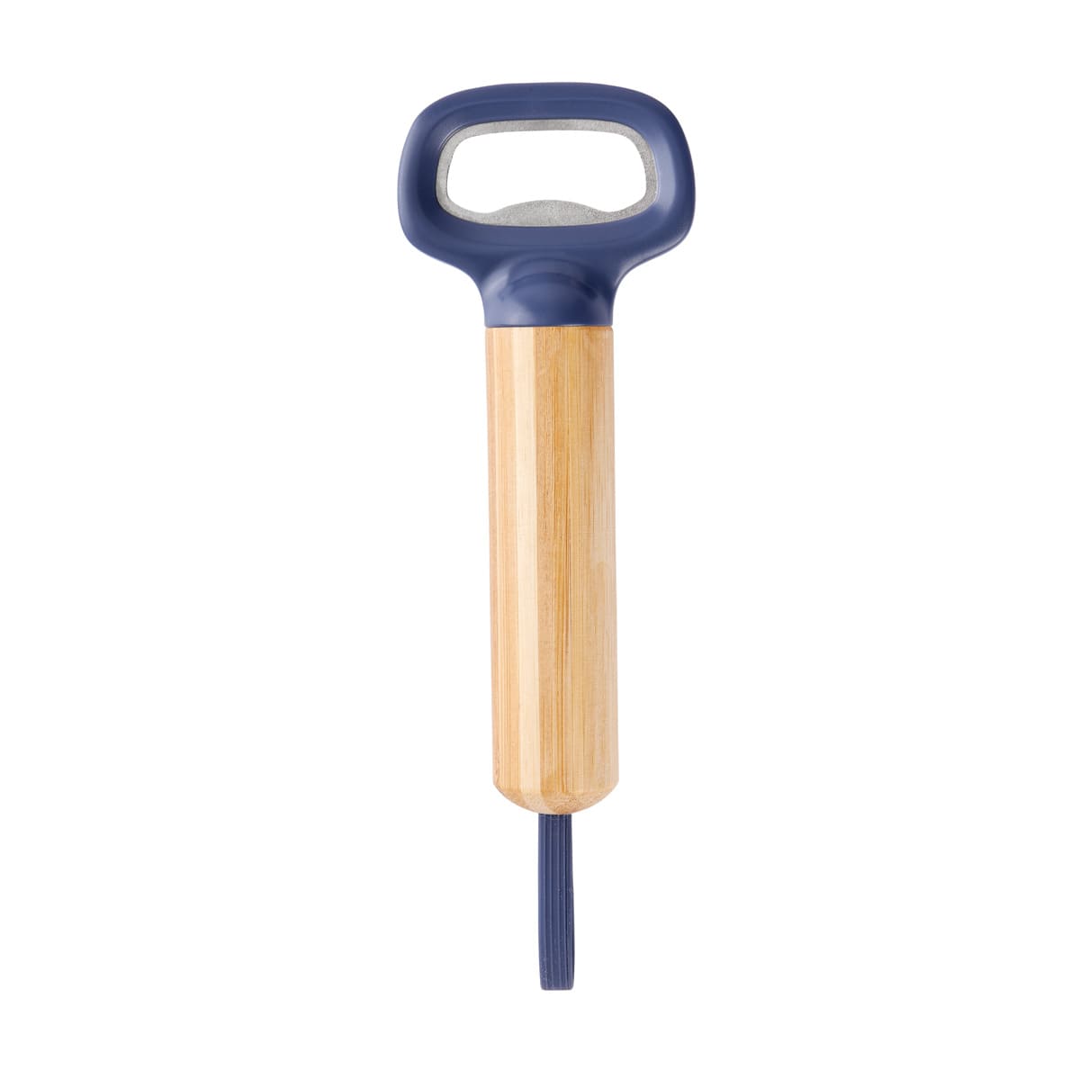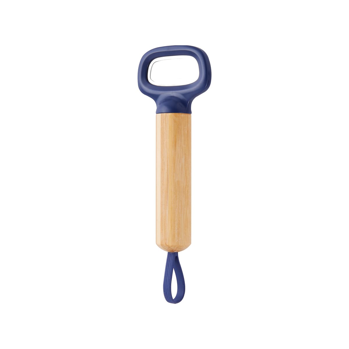 Destapador con mango solido ergonomico. Hecho de bambu y acero inoxidable de alta calidad, no se rompe ni deforma facilmente. Incluye asa de silicon para que pueda ser enganchado y tenerlo siempre al alcance.
