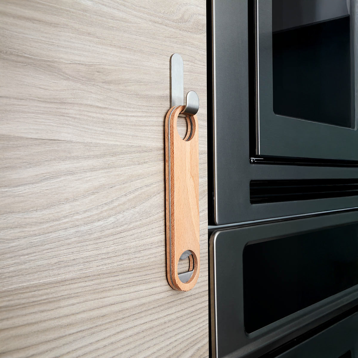 Destapador para botellas. Incluye argolla adicional para que pueda ser enganchado y tenerlo siempre al alcance.