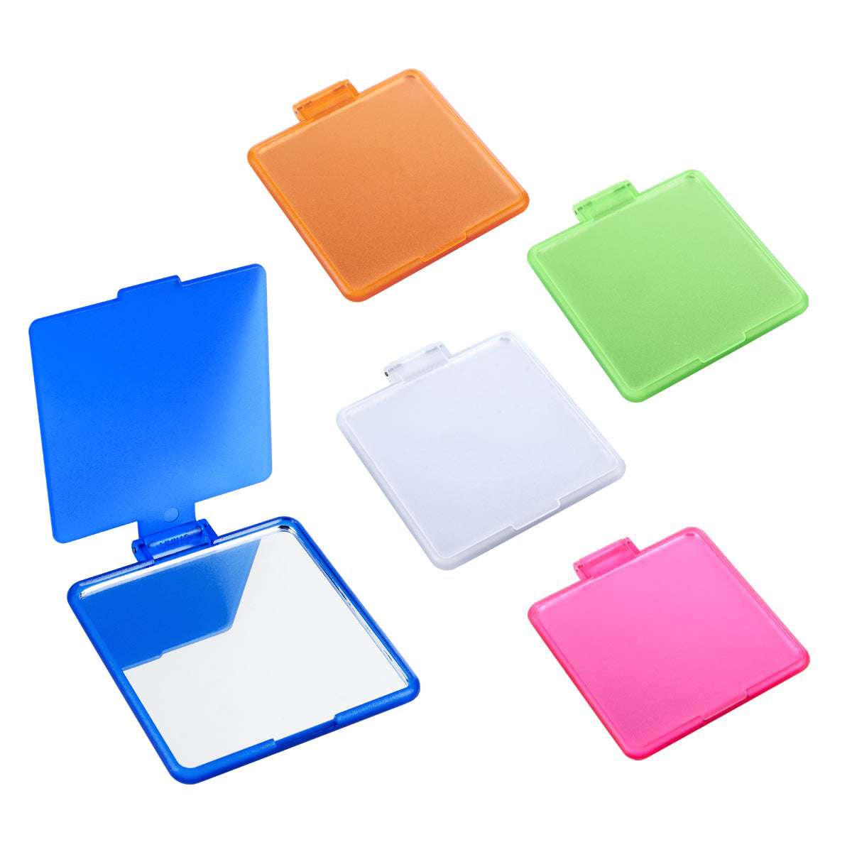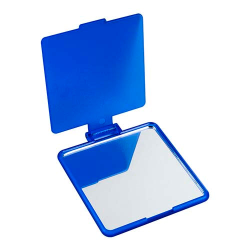 Espejo cuadrado de bolsillo. La tapa sirve como base. Este producto por ser últimas piezas puede presentar alguna variación, no se aceptan devoluciones.
