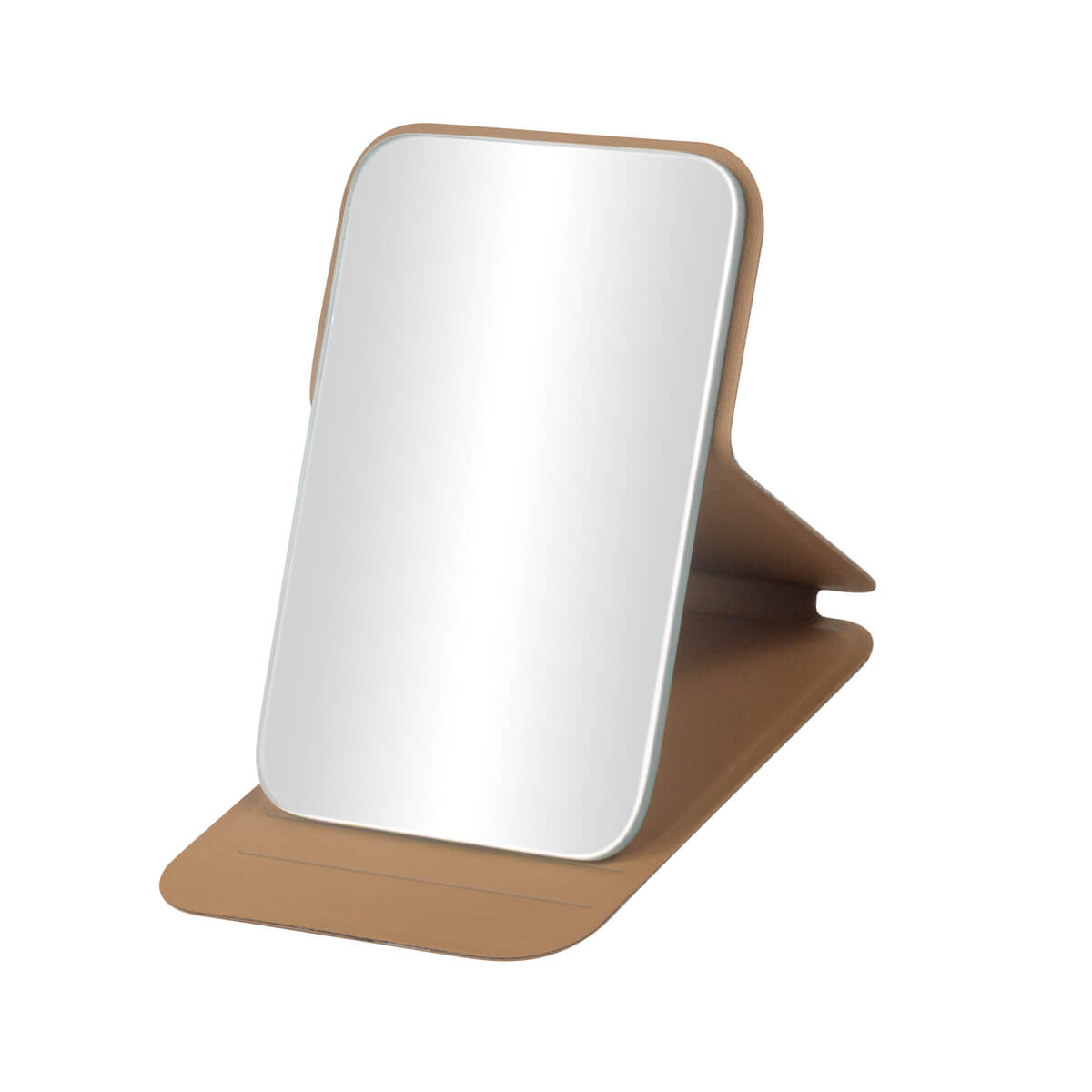 Espejo plegable con cubierta de curpiel. Cuenta con 3 posiciones de inclinación para ajustarlo a tu comodidad. Llevalo en tu bolsa o acomodalo en el tocador.