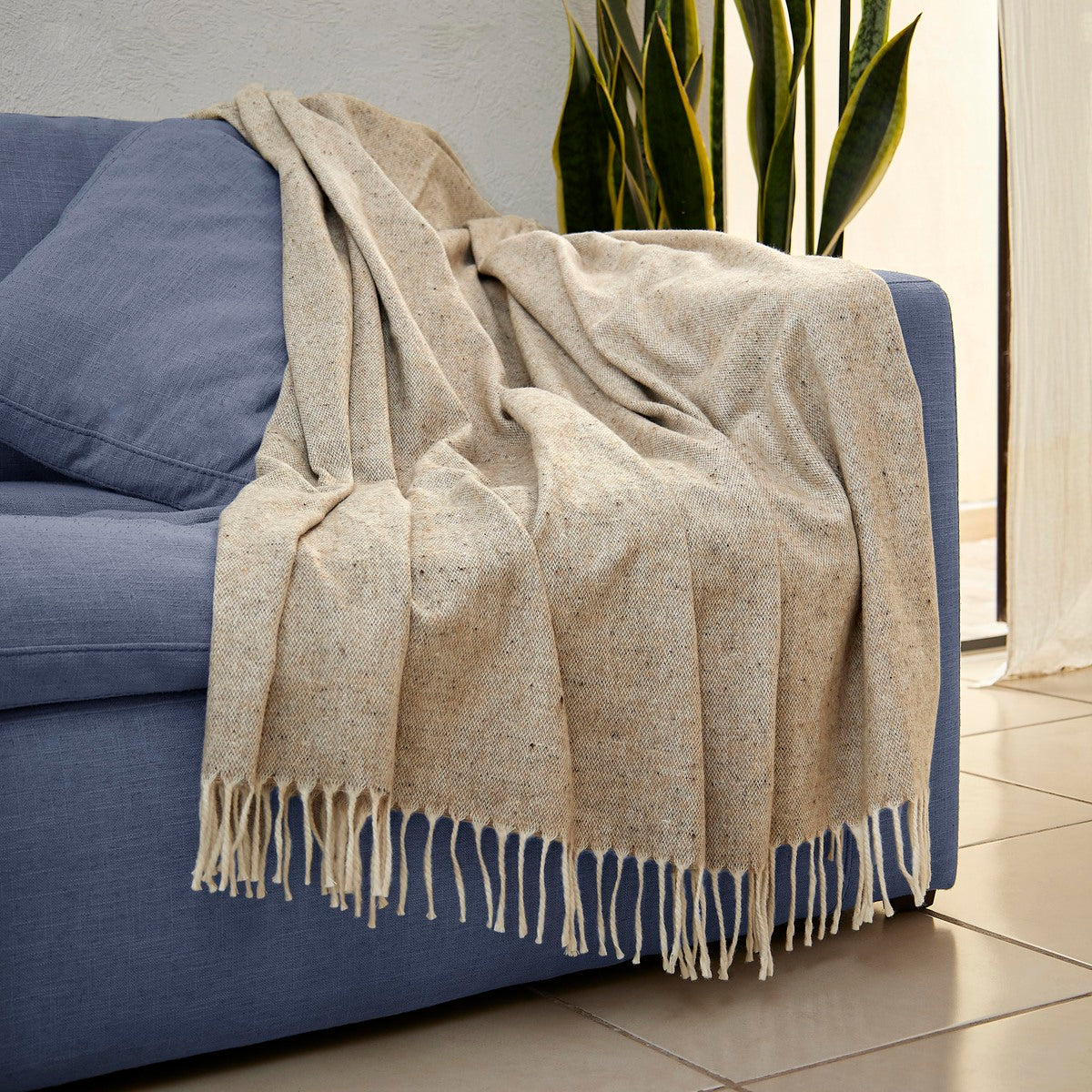 Manta con flecos en los extremos. Composicion: 80% lana y 20% poliester. Anade calidez y estilo a cualquier espacio, disenada para ser tanto funcional como esteticamente agradable, ya que no solo te envuelve en confort, sino que tambien aporta un toque de elegancia a tu hogar. Perfecta para colocar sobre un sofa, una cama o en tu rincon favorito, su diseno versatil complementa cualquier decoracion.