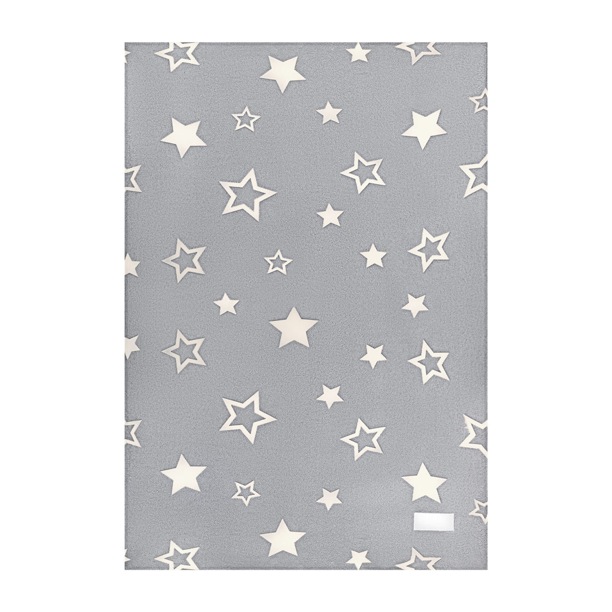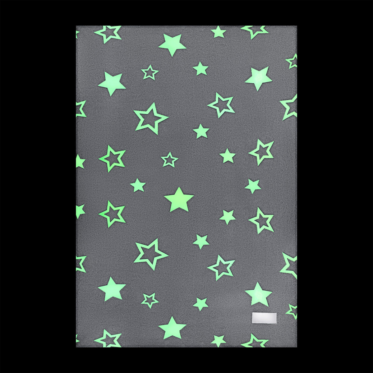 Frazada luminosa con diseno de estrellas que brillan delicadamente en la oscuridad. Calida, comoda y suave al tacto, ideal para crear un ambiente acogedor y relajante. Diseno luminoso, basta con exponerla a una luz brillante o a la luz del sol durante 10-15 minutos para que absorba la luz y brille en la oscuridad.