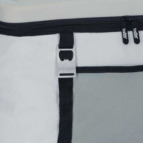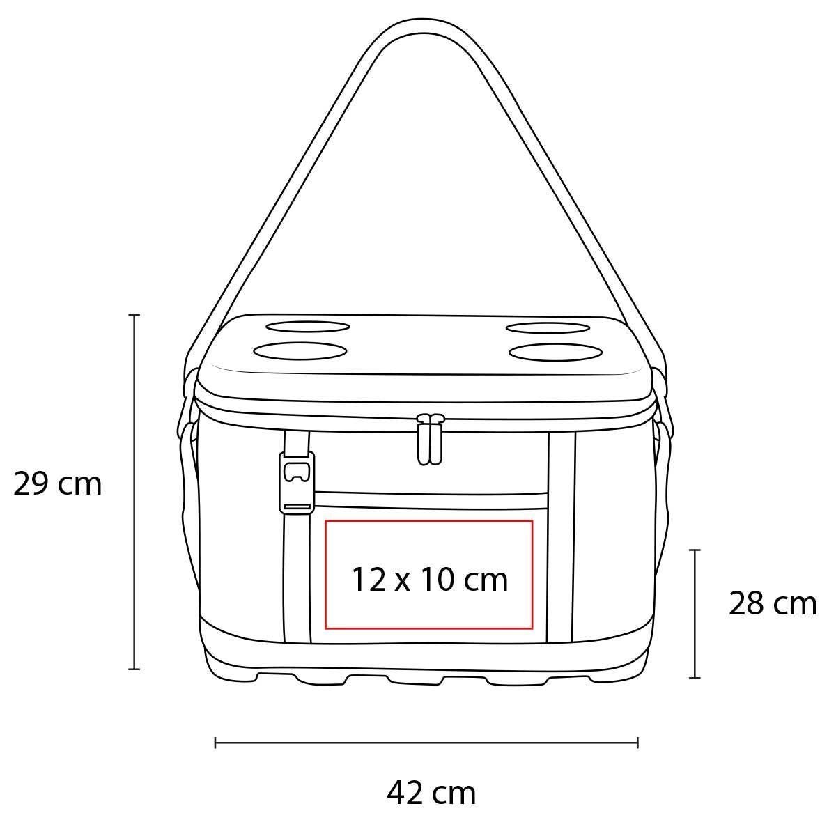 Hielera plegable con interior plastificado impermeable. Base y tapa rigida de EVA, con moldura en la parte superior con funcion de porta latas. Correa ajustable removible y asas laterales. Bolsillo frontal. Bolsa de malla interior. Incluye destapador metalico. Capacidad para 48 latas.