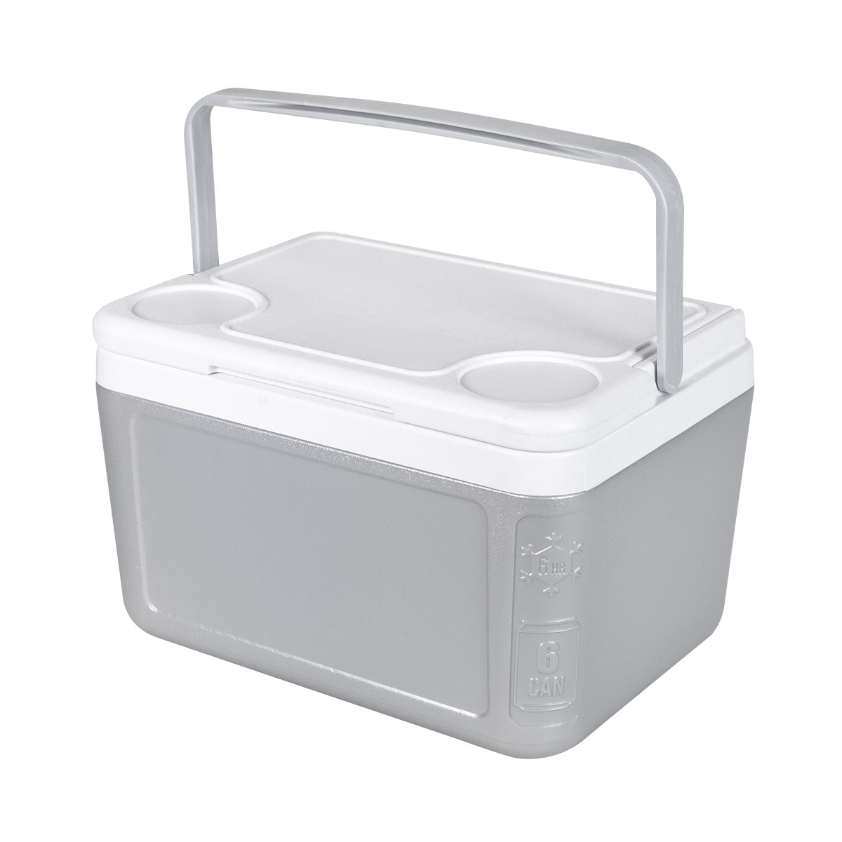 Capacidad para 6 latas. Moldura en la parte superior que sirve como porta latas. Asa superior de facil agarre.