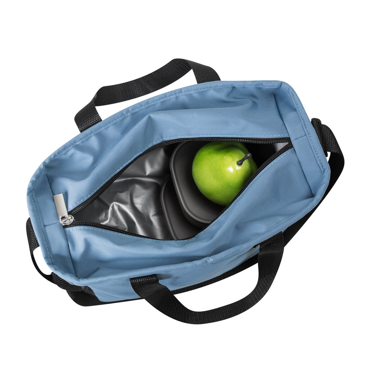 Hielera con interior plastificado impermeable. Bolsa principal con cierre, doble bolsillo frontal y dos bolsillos laterales de malla. Su práctico diseño le brinda comodidad y practicidad para almacenar alimentos y bebidas. Incluye correa para hombro ajustable. Capacidad de 10 latas.