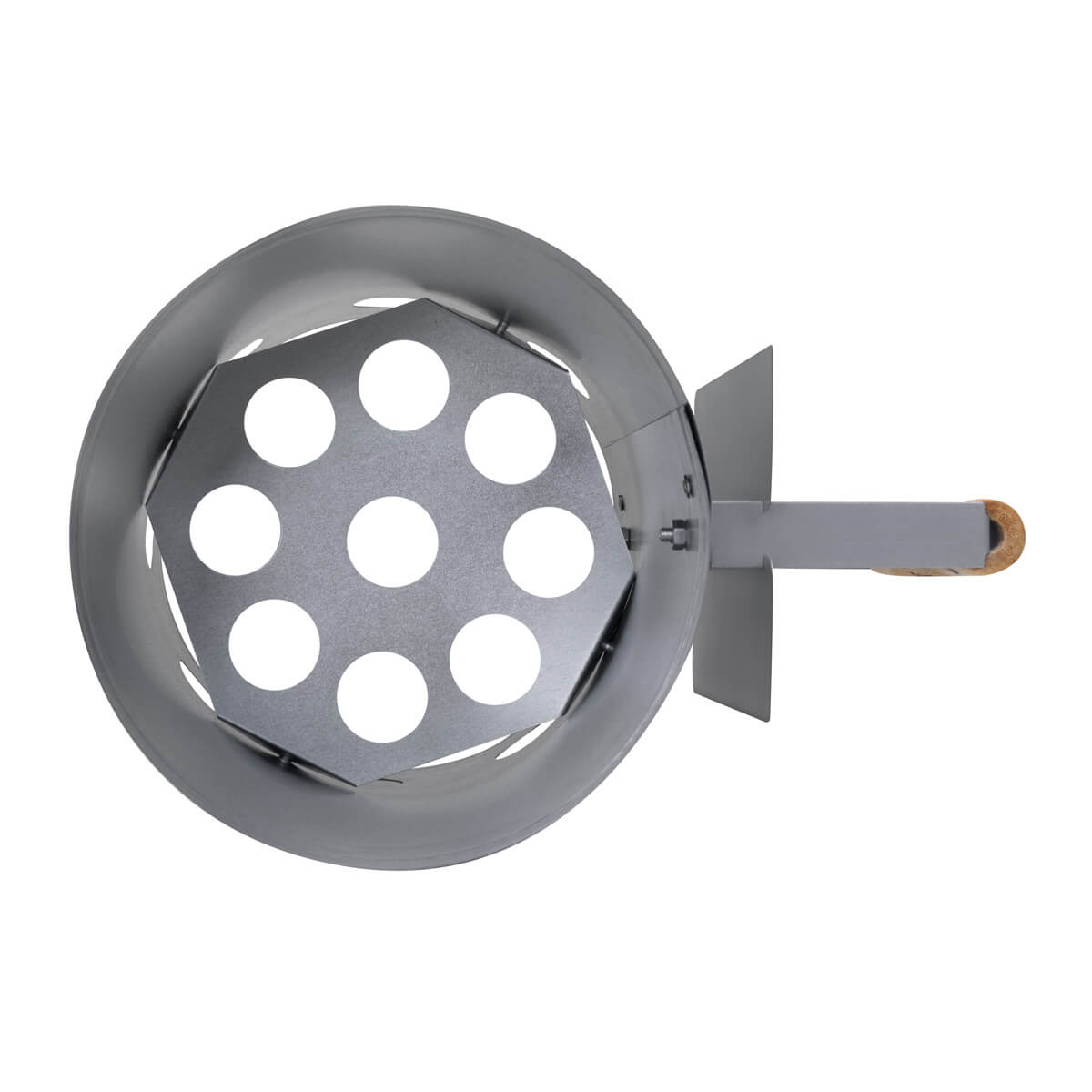 Pared de acero inoxidable. Incluye mango diseñado ergonómicamente, no resbala y permite una fácil manipulación. Este práctico accesorio acelera el proceso de encendido de carbón sin necesidad de químicos, asegurando brasas uniformes para disfrutar de una cocción perfecta. Fabricado con materiales resistentes al calor, su diseño con orificios estratégicos optimiza el flujo de aire para un encendido fácil y controlado. Capacidad de hasta 2kg.