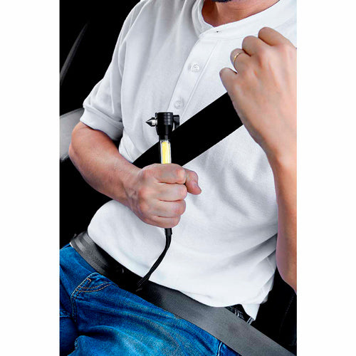 Lampara de 6 LEDS con iman. Funcion de martillo y corta cinturon. Incluye correa.