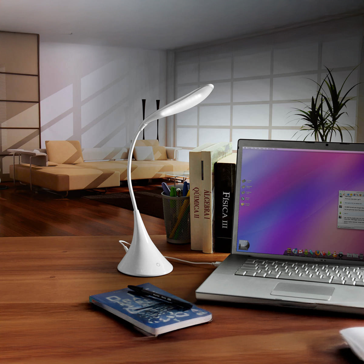12 LEDS. Cuello flexible y ajustable. Funciona con baterias y con cable USB. Intensidad de luz ajustable. No incluye baterias (3 pilas AA).