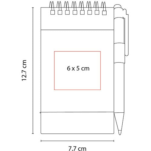 Libreta con 50 Hojas de raya. Incluye bolígrafo ecológico y elástico para cerrar.