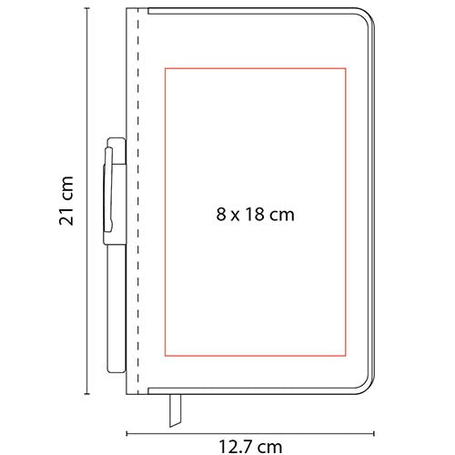 Libreta con 96 hojas de raya con borde metalico para proteccion de extremos. Incluye elastico y boligrafo metalico.