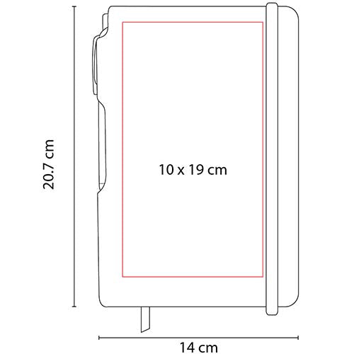 Libreta con 80 hojas de raya. Incluye separador de hojas, elástico para cerrar y bolígrafo de plástico.