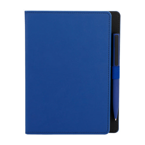 Libreta con 80 hojas a rayas. Incluye boligrafo terminado rubber.