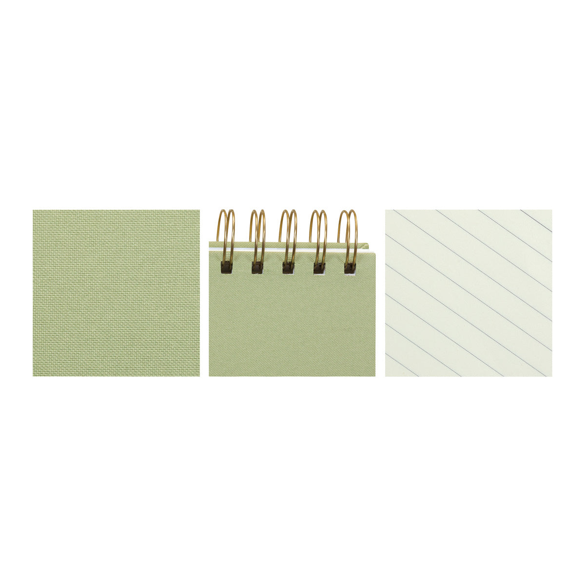 Libreta de espiral con 100 hojas a raya. Cubierta rígida de tela. Su formato vertical, hace que se distinga de las libretas tradicionales, ofreciendo una experiencia diferente y práctica al tomar notas o plasmar ideas.