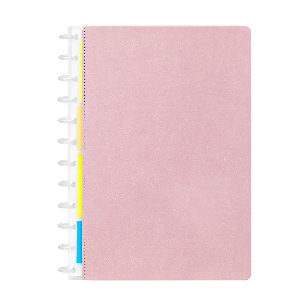 Libreta con 20 hojas a raya, 20 hojas a cuadros y 20 hojas punteadas. Cubierta rigida de curpiel. Incluye 12 aros de plastico, que funcionan como espiral y permiten la incorporacion de hojas removibles, lo que facilita la organizacion de tus apuntes, cuantas veces lo desees. Incluye una regla de PVC con notas adhesivas. Su tamano profesional, la hace ideal para quienes requieren un amplio espacio para escribir, dibujar o planificar.