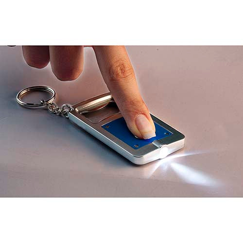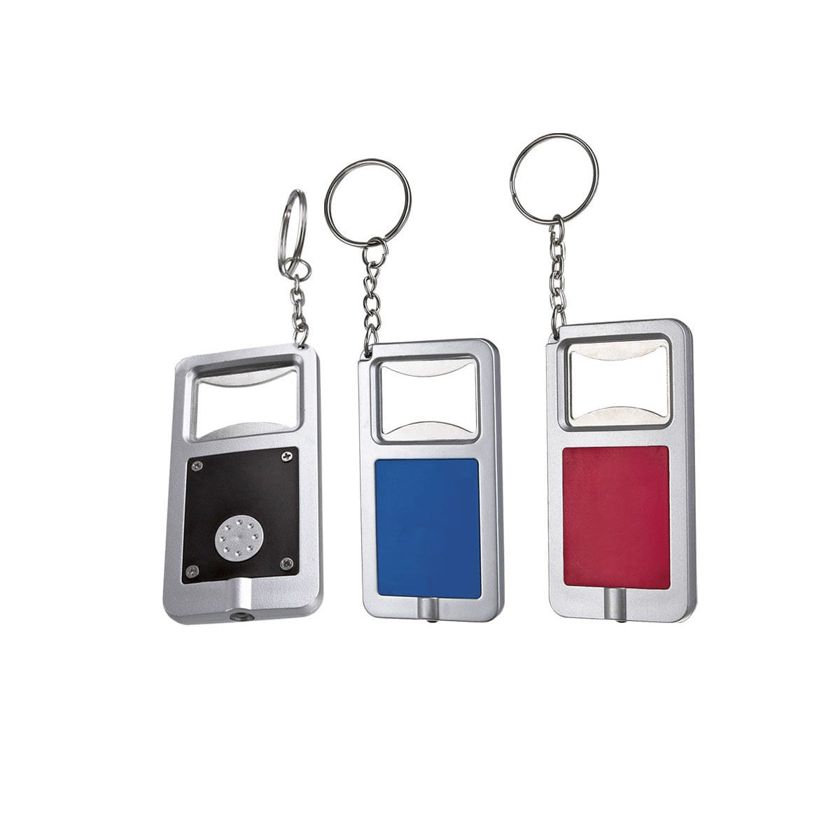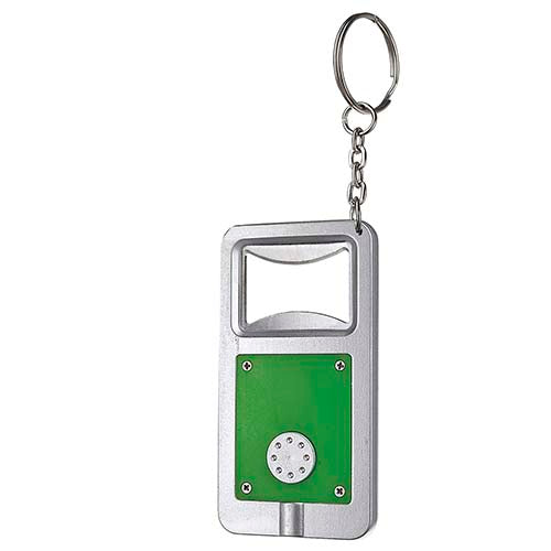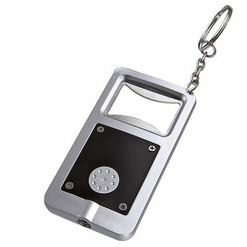 Llavero destapador con lampara de 1 LED. Incluye 2 baterias de boton.